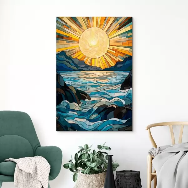 Picture Sun and waves in the style of stained glass art Nr s42654