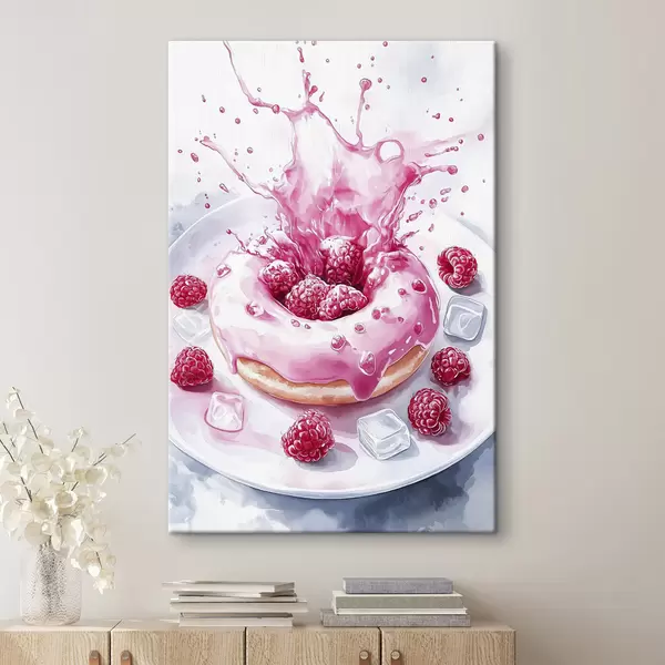 Picture Delicious donat on the plate, sparkling cream, raspberries, ice Nr s42788