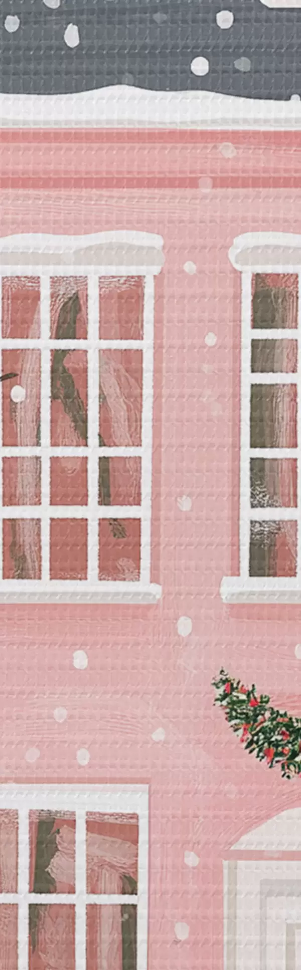 wall murals Cute pink houses, pine trees, winter landscapes  s42791