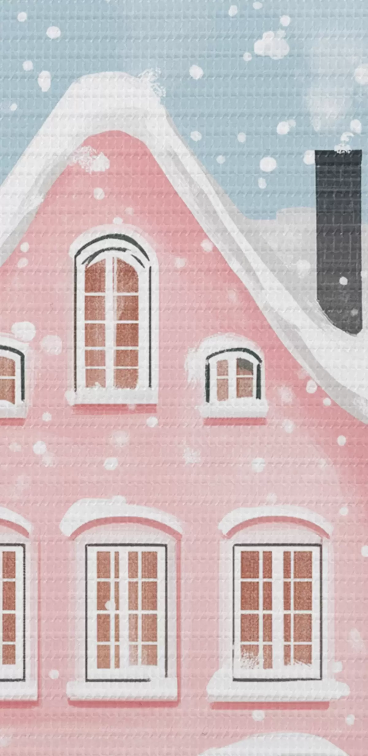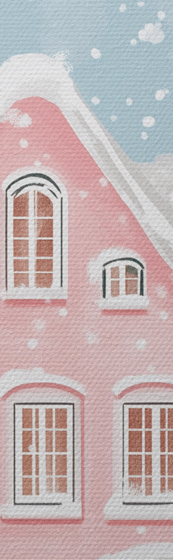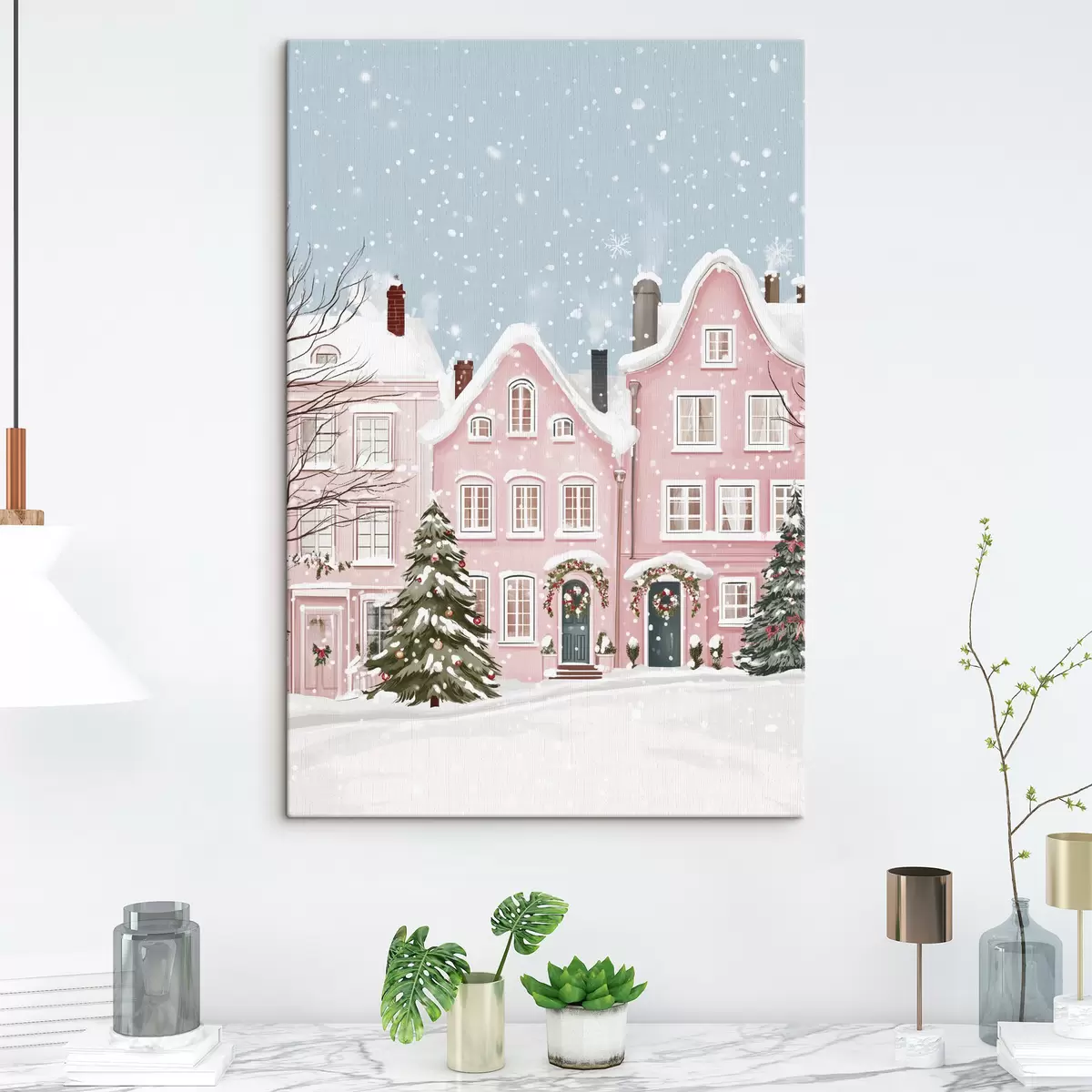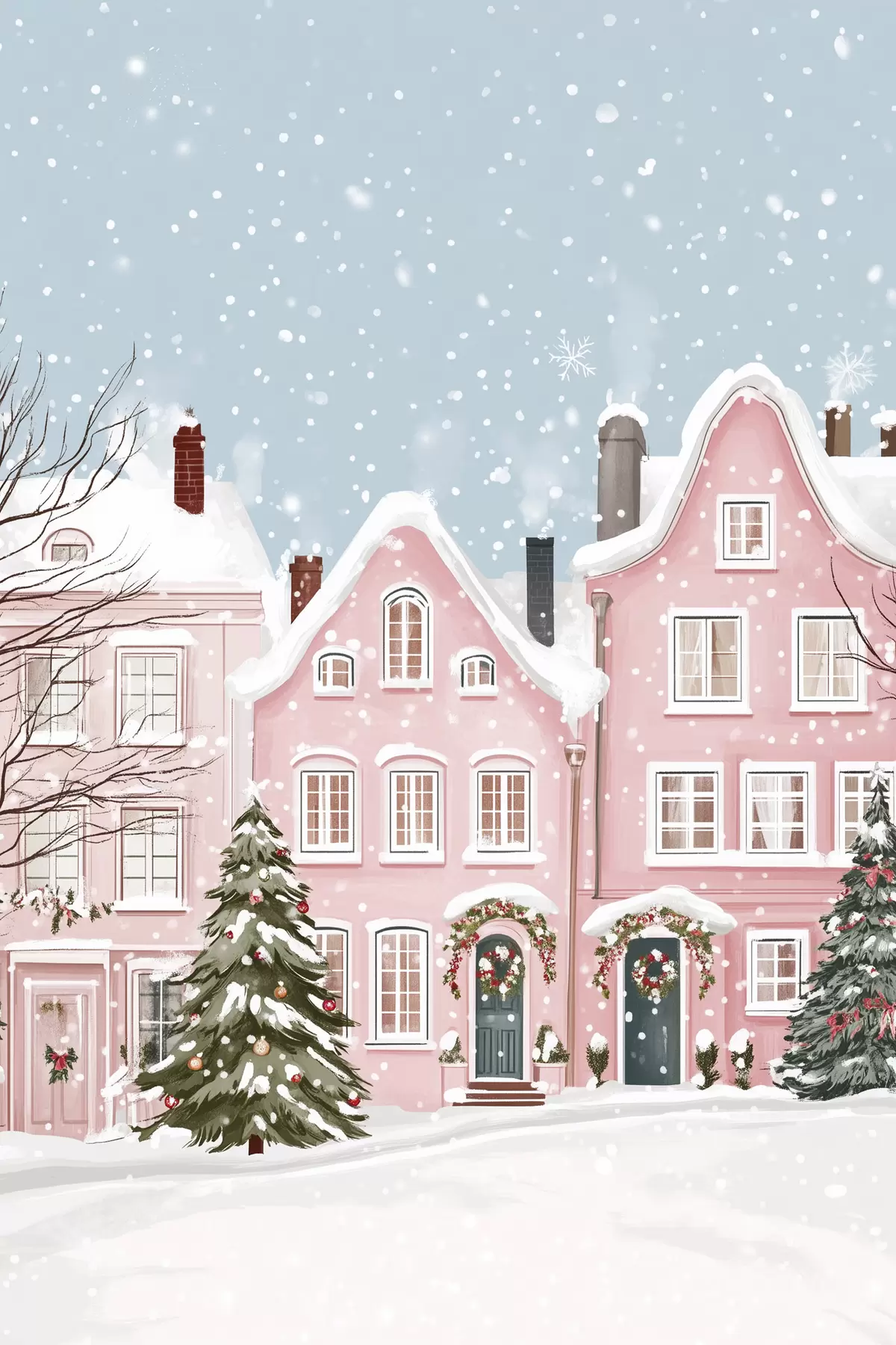 Picture Beautiful town with cute pink houses, winter aesthetics, snowflakes Nr s42793