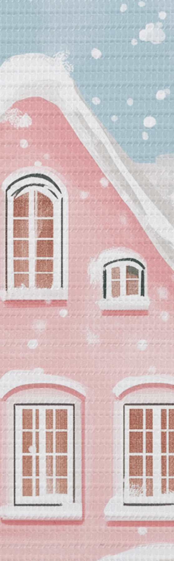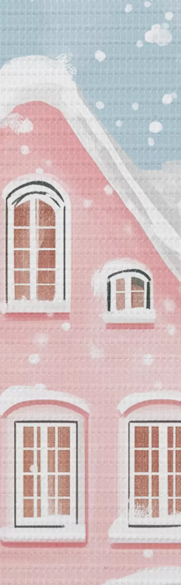 wall murals Beautiful town with cute pink houses, winter aesthetics, snowflakes  s42793