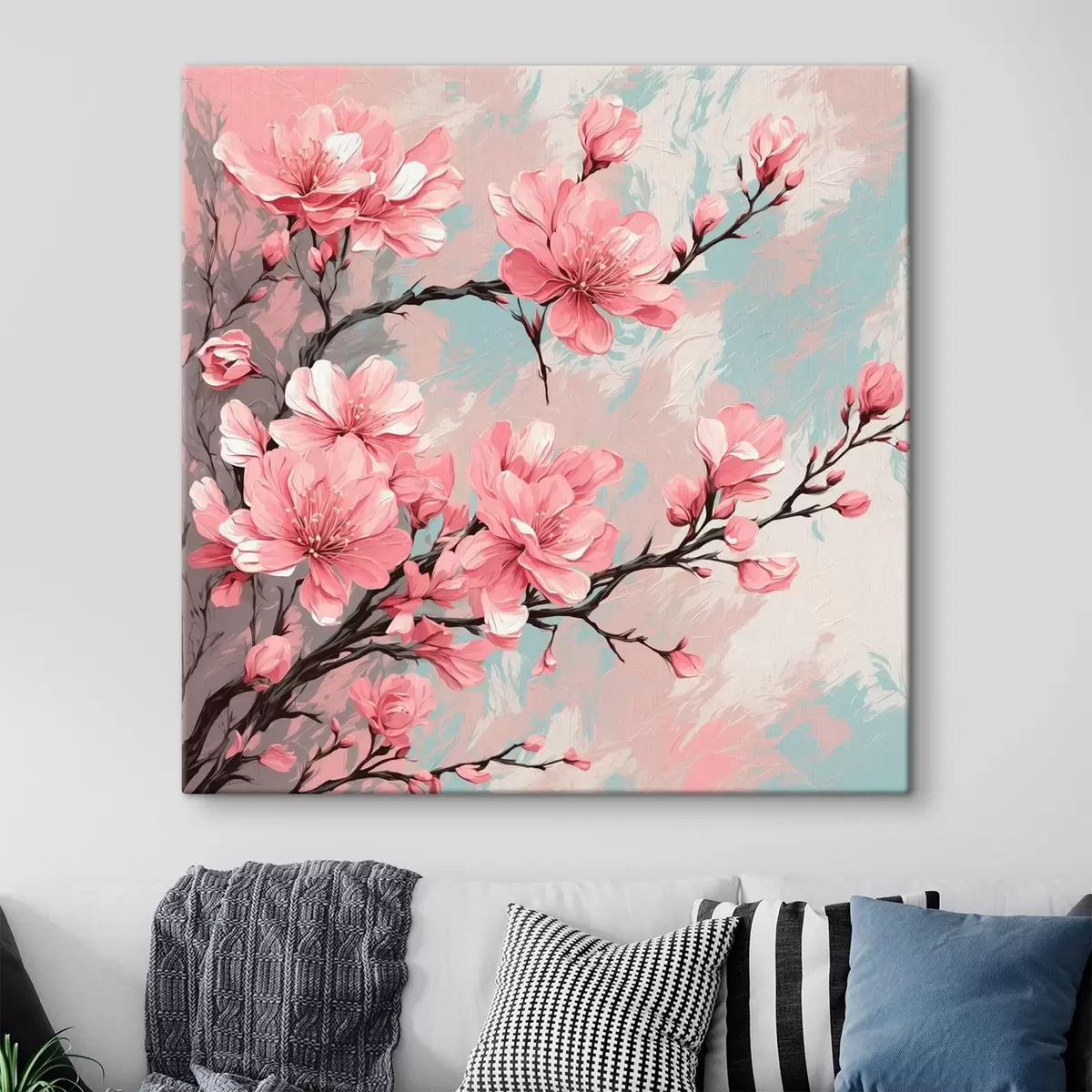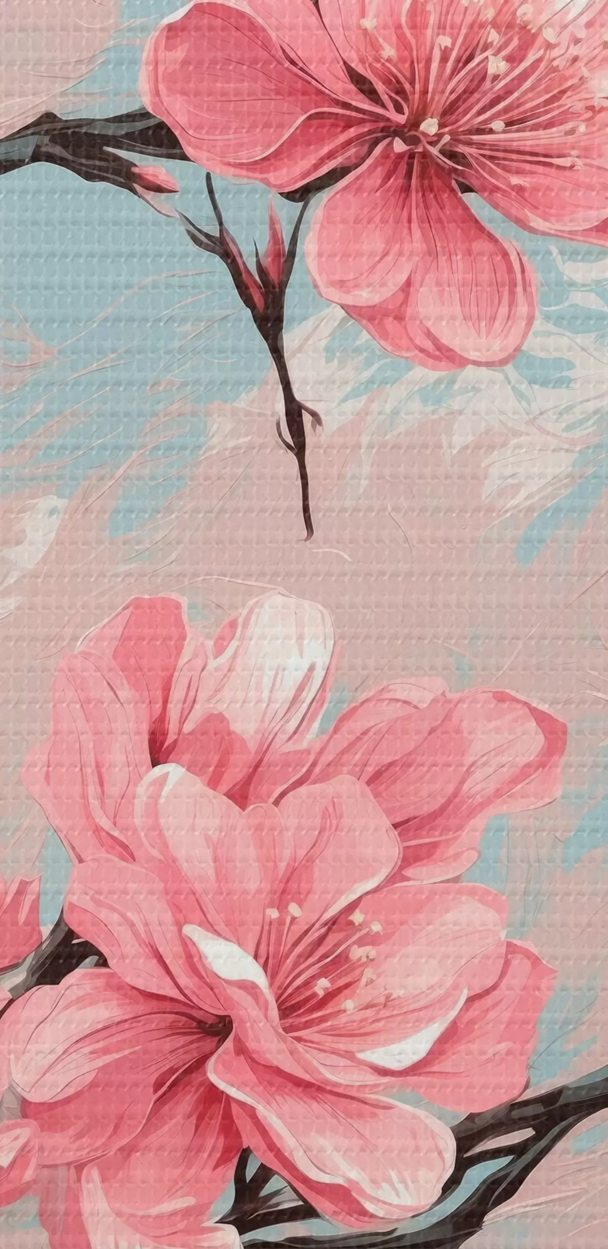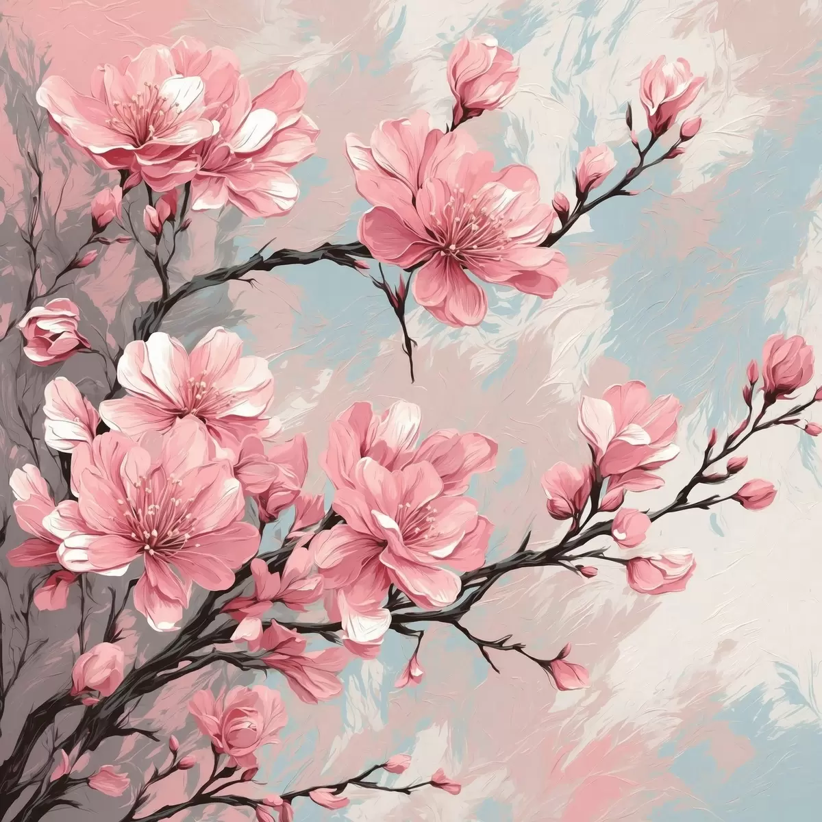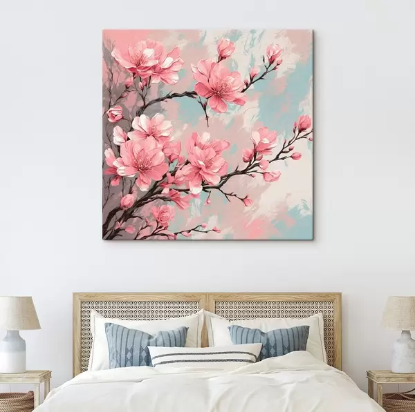 Picture Pink flowers and stems in acrylic painting style Nr s42918