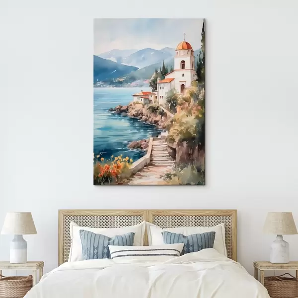 Picture Church by the sea with mountains in the background Nr s42962