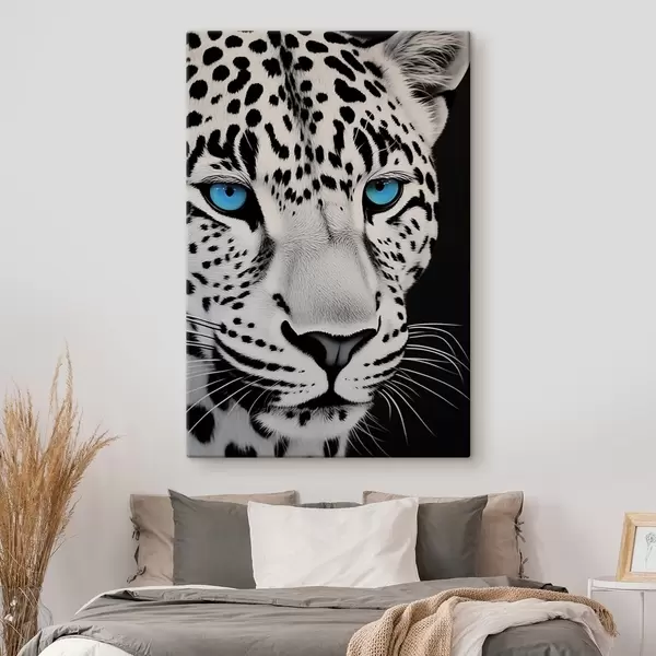 Picture Black and white portrait of a leopard with blue eyes Nr s43008