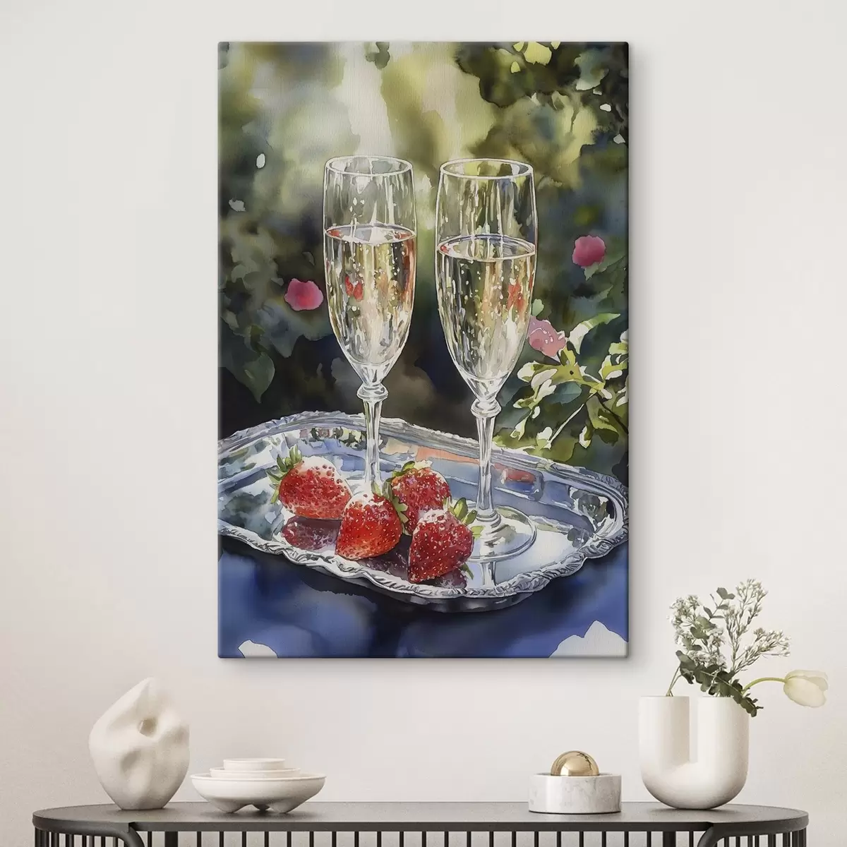 Picture Festive and sparkling champagne glasses with strawberries on the tray Nr s43057