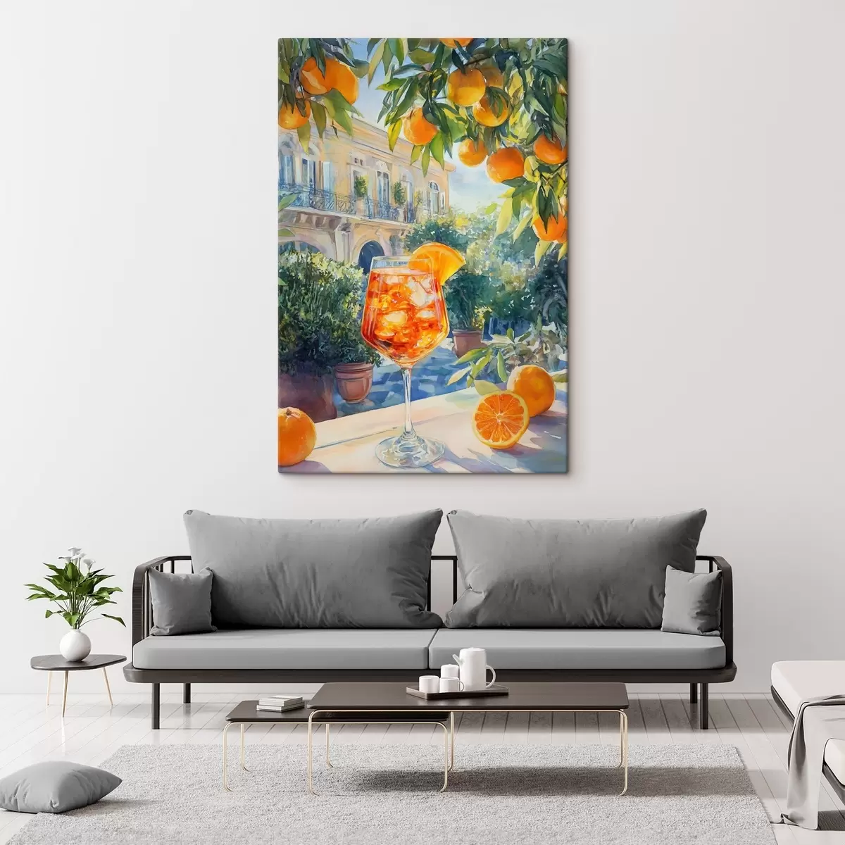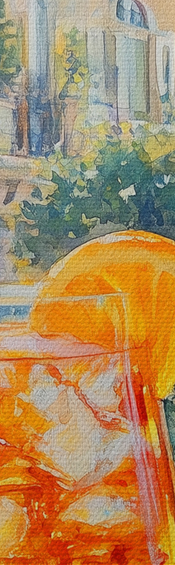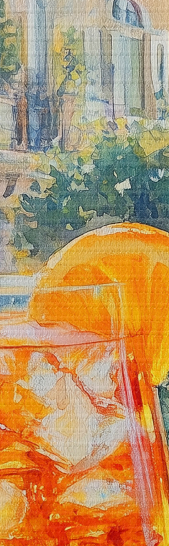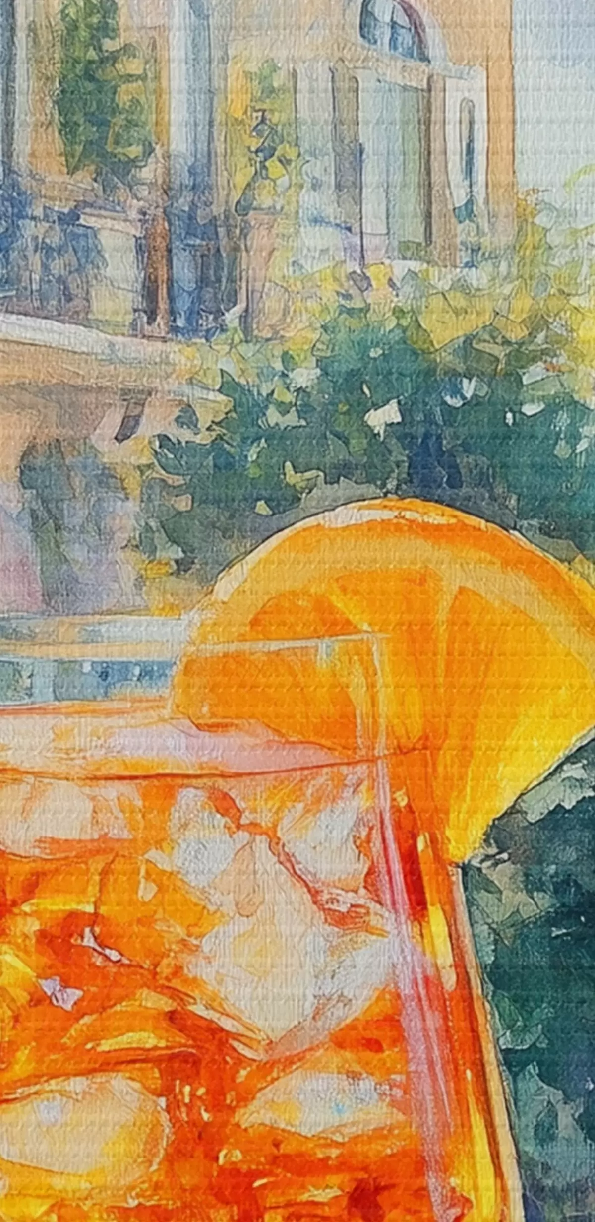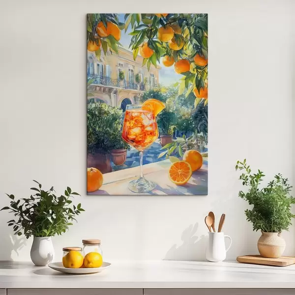 Picture Cocktail with oranges, watercolor style, Italy, Aperol Spritz, architecture, summer garden Nr s43061