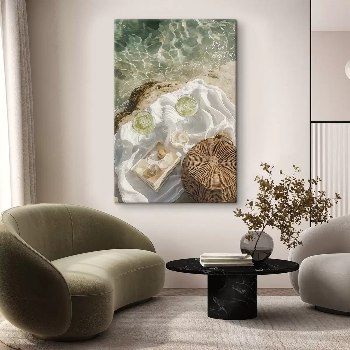 Picture Summer aesthetics, ocean waves, beach, cocktails, watercolor style Nr s43069
