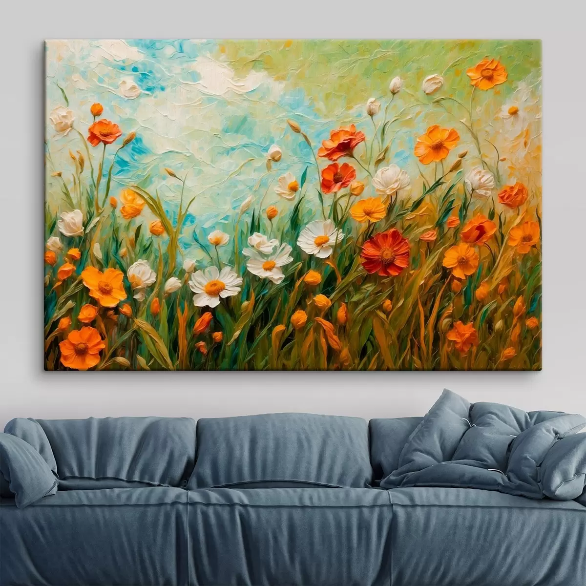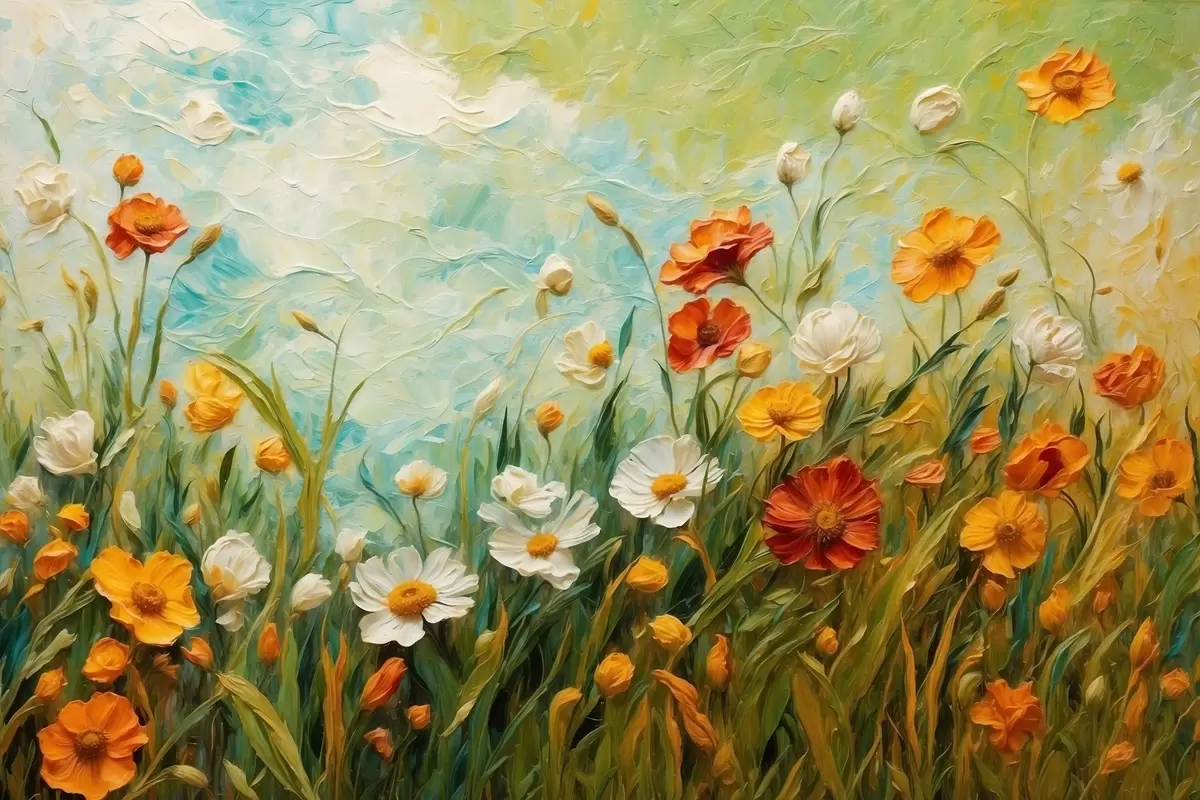 Picture Field of flowers on abstract blue sky background Nr s43100