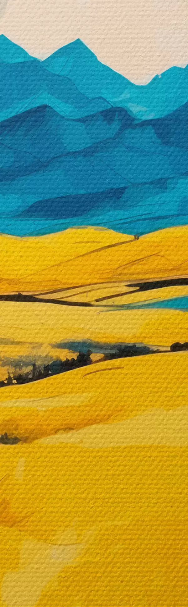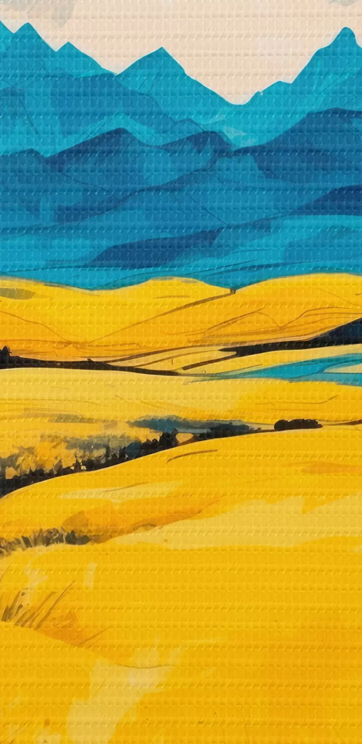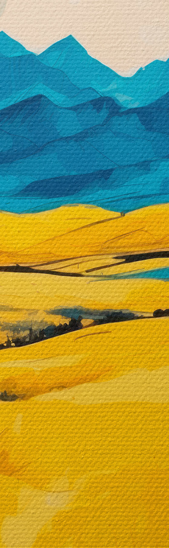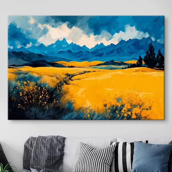 Picture Yellow field on the background of mountains in watercolor painting style Nr s43117