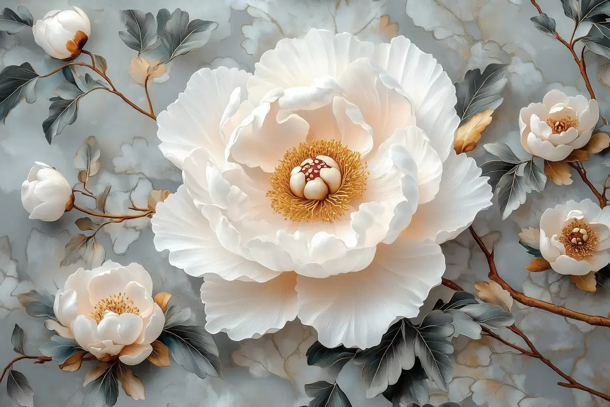 Picture Gorgeous peony against a background of leaves and small peonies Nr s43315