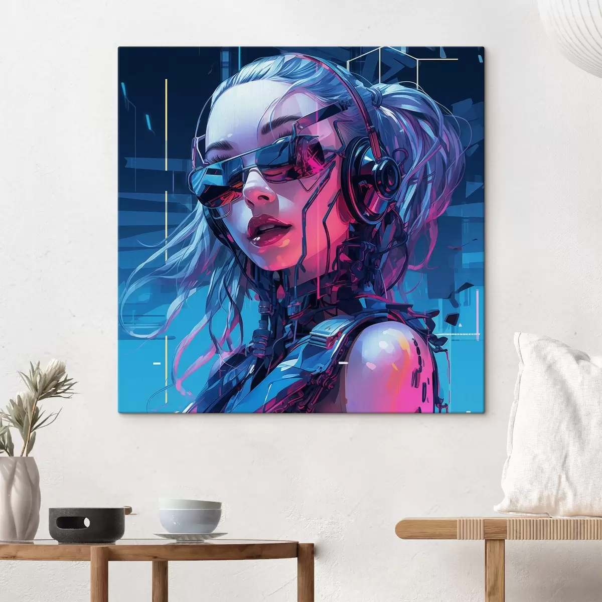 Picture Futuristic girl in glasses with a neon color effect Nr s43381