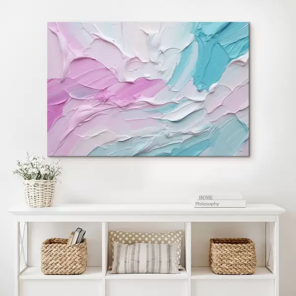 Picture An abstract oil painting imitation with thick strokes of pink, white and turquoise paint, creating a textured effect Nr s43393