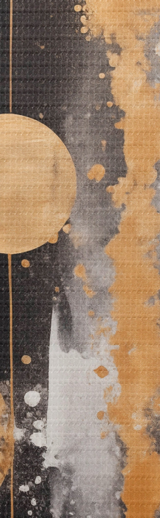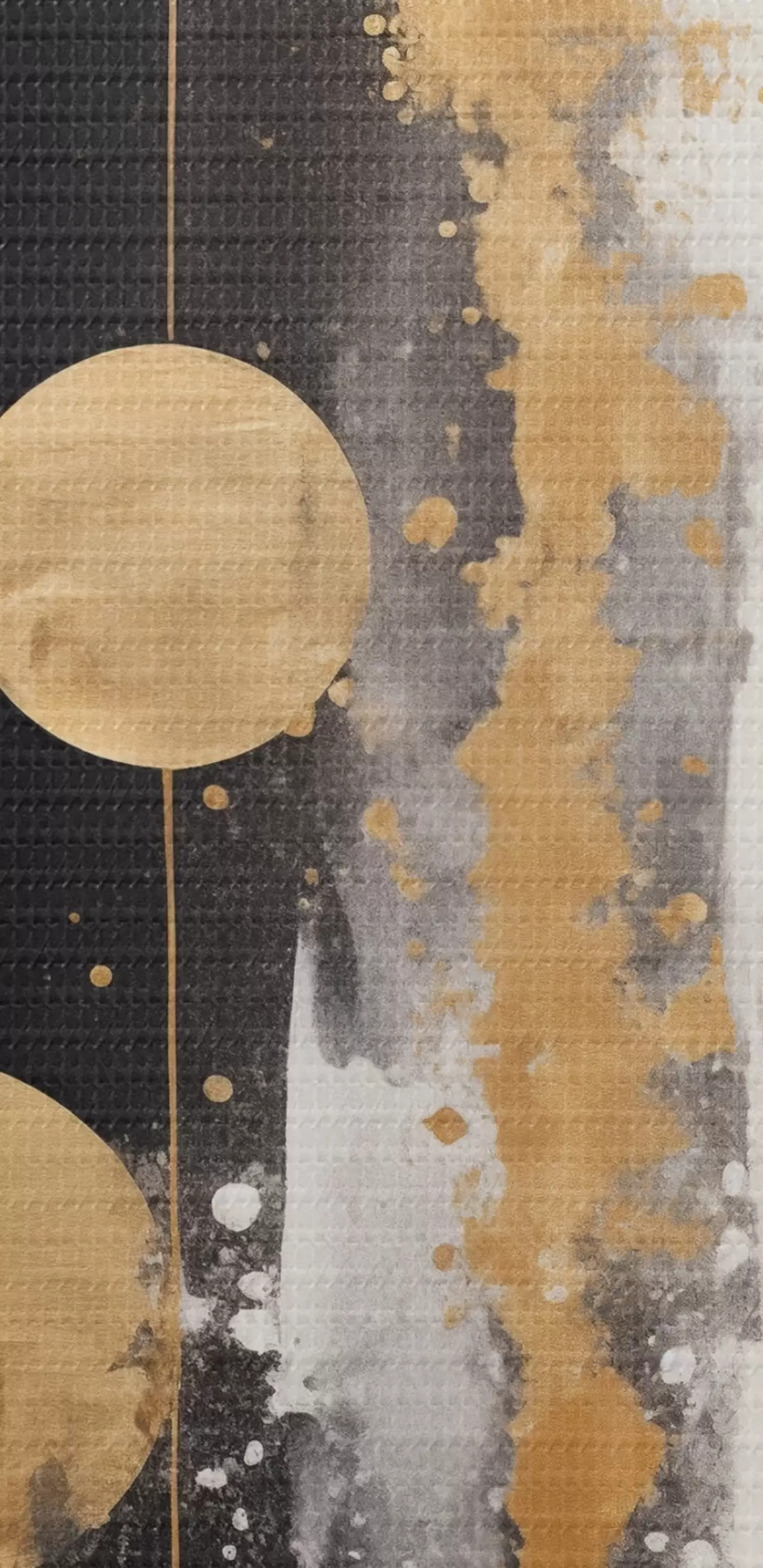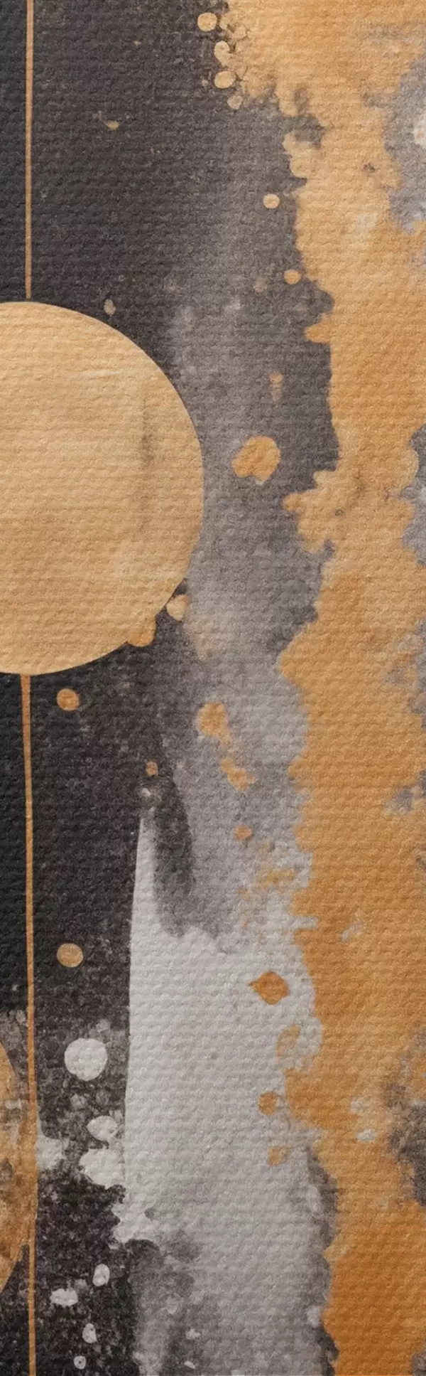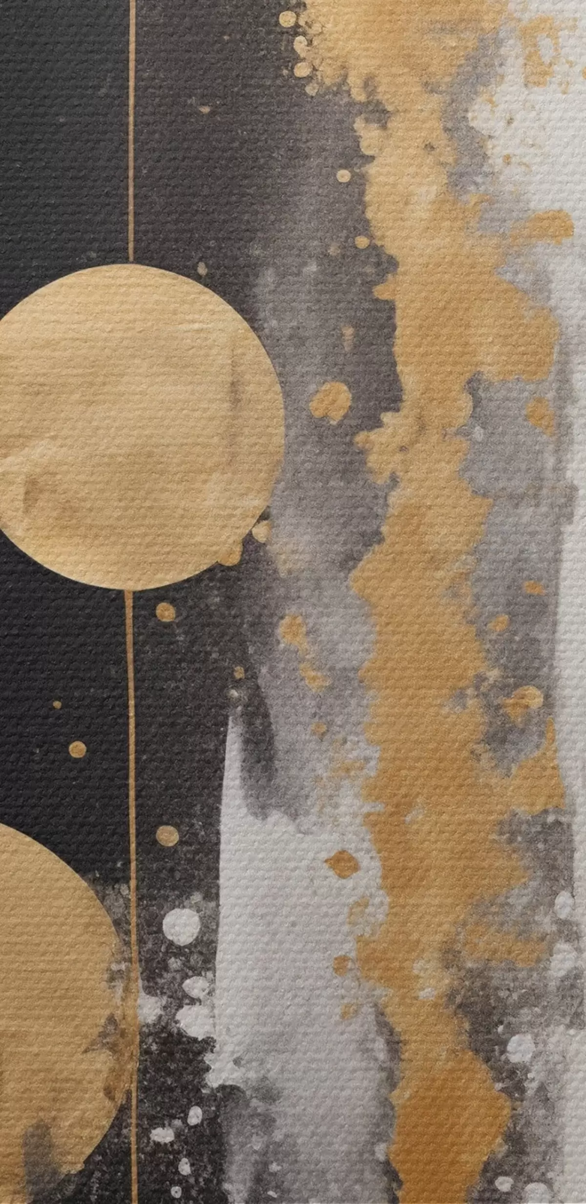 Picture Abstract art with yellow circles hanging on black and white background with white and yellow spots Nr s43410