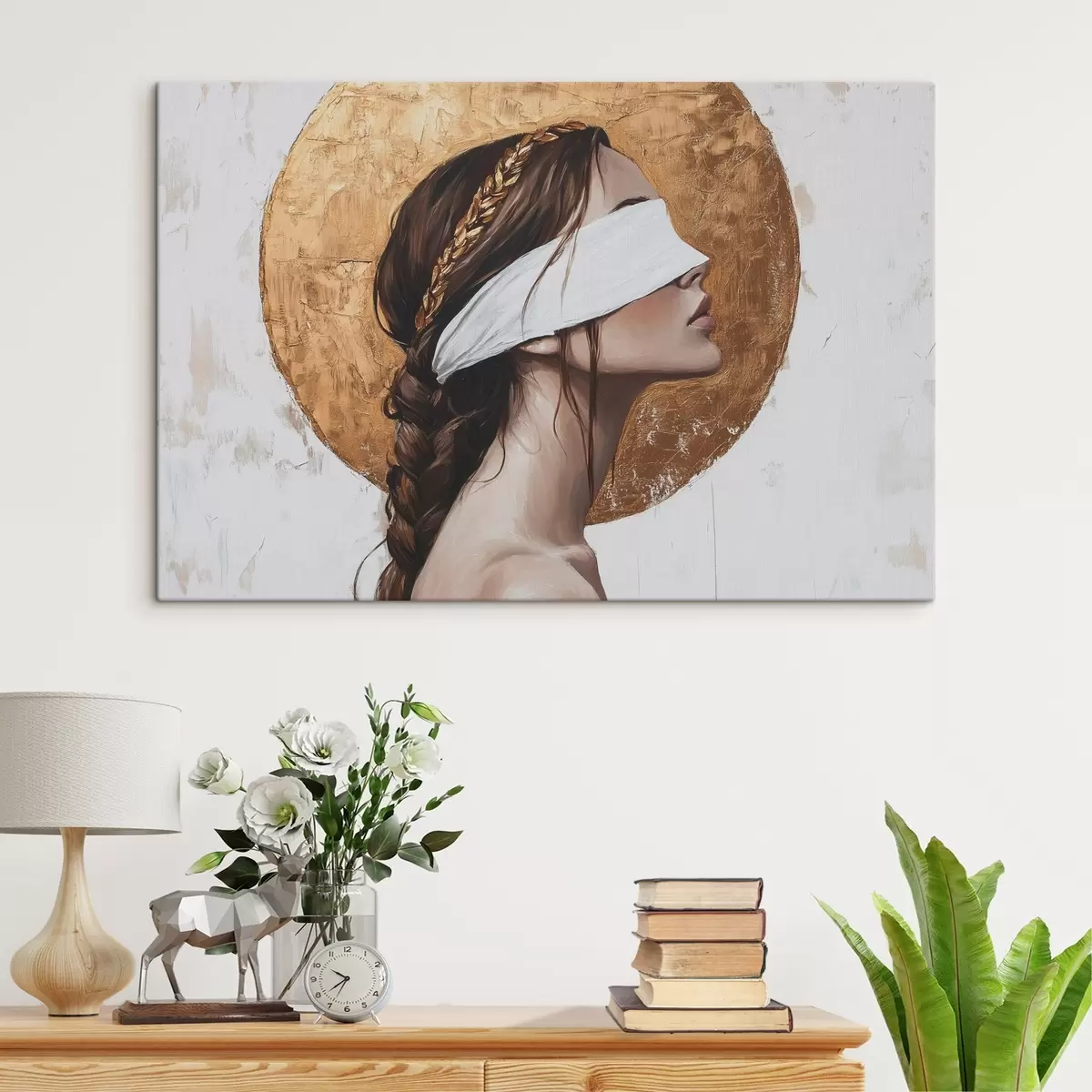 Picture Woman with bandage on her eyes, Greece, acrylic style drawing Nr s43502