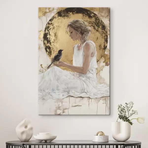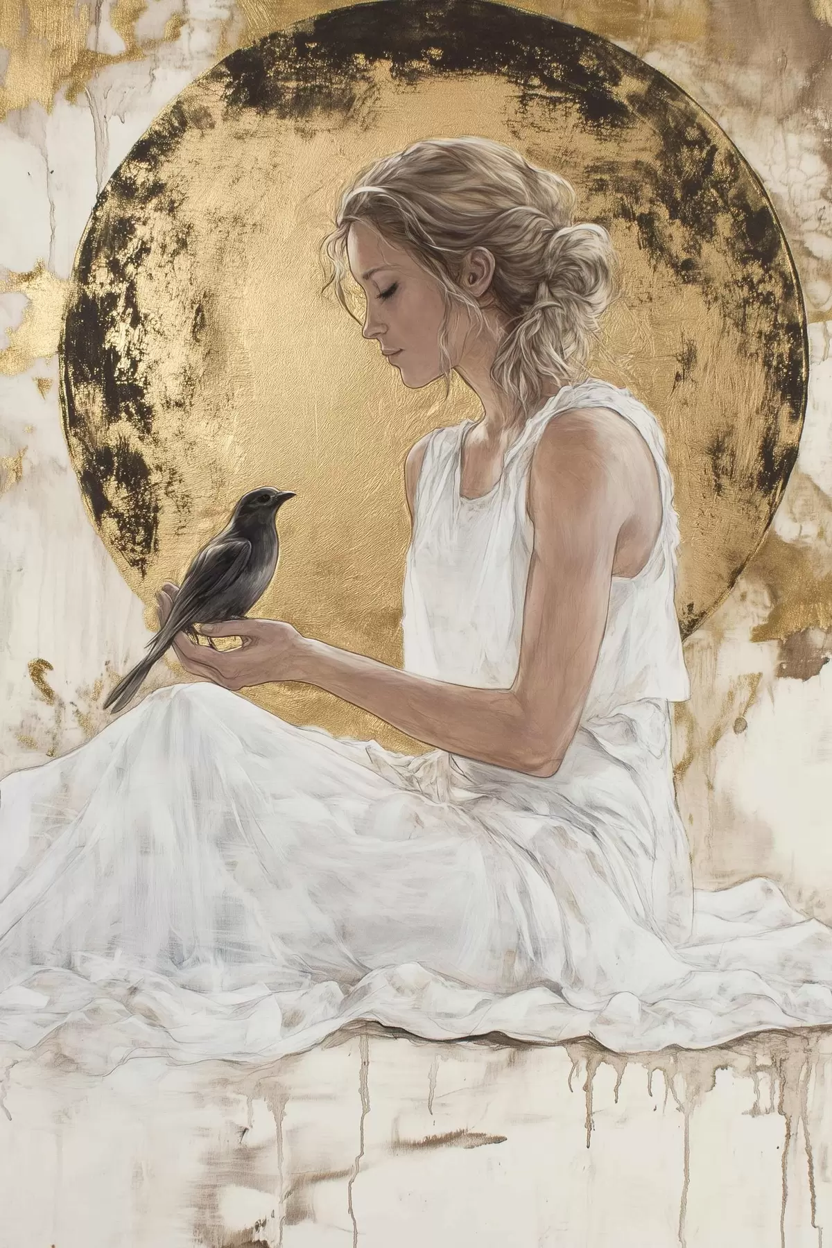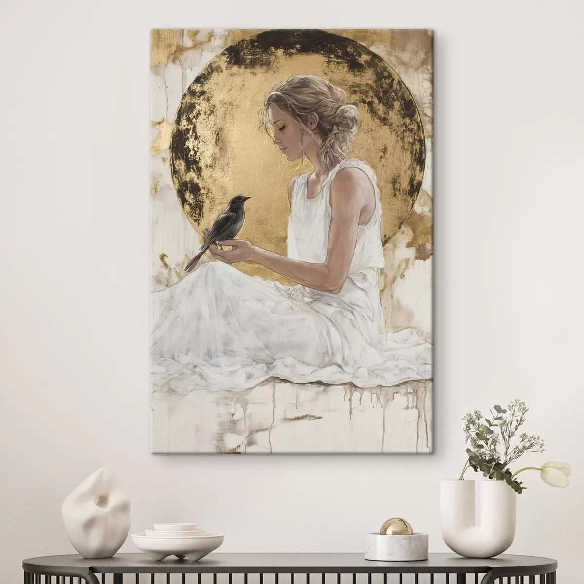 Picture Beautiful woman with bird, Greece, acrylic style drawing Nr s43503