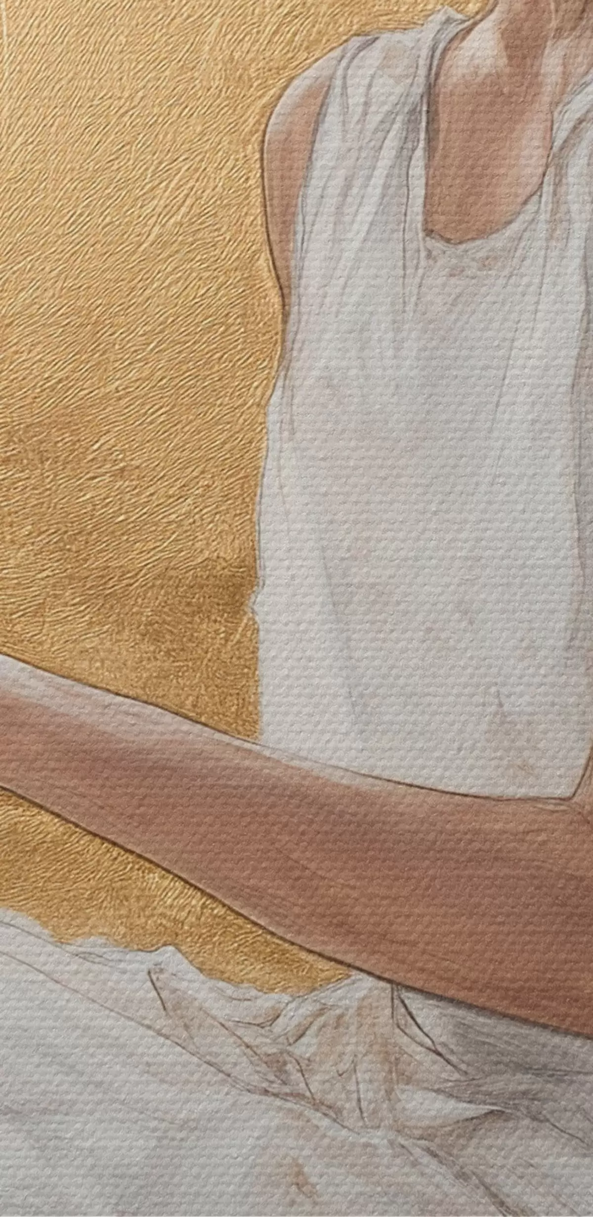 To stretch the canvas on stretcher bars without damaging the image, we use mirrored image.