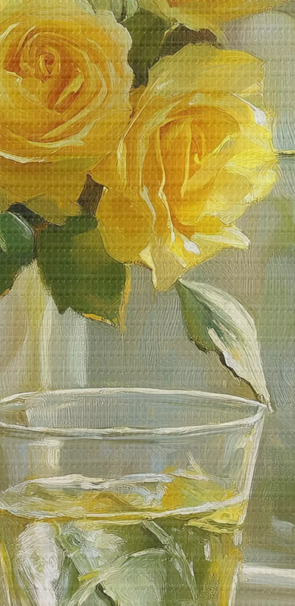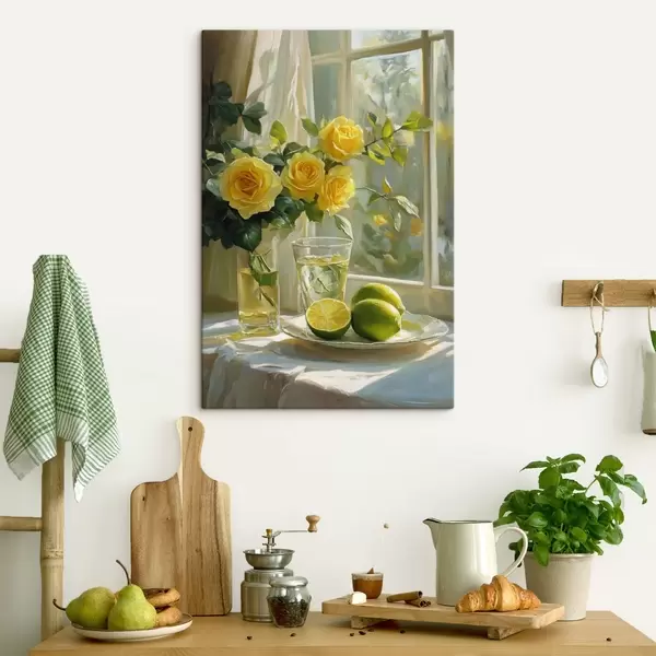 Picture Beautiful yellow roses in the vase near the window, water with limes Nr s43886