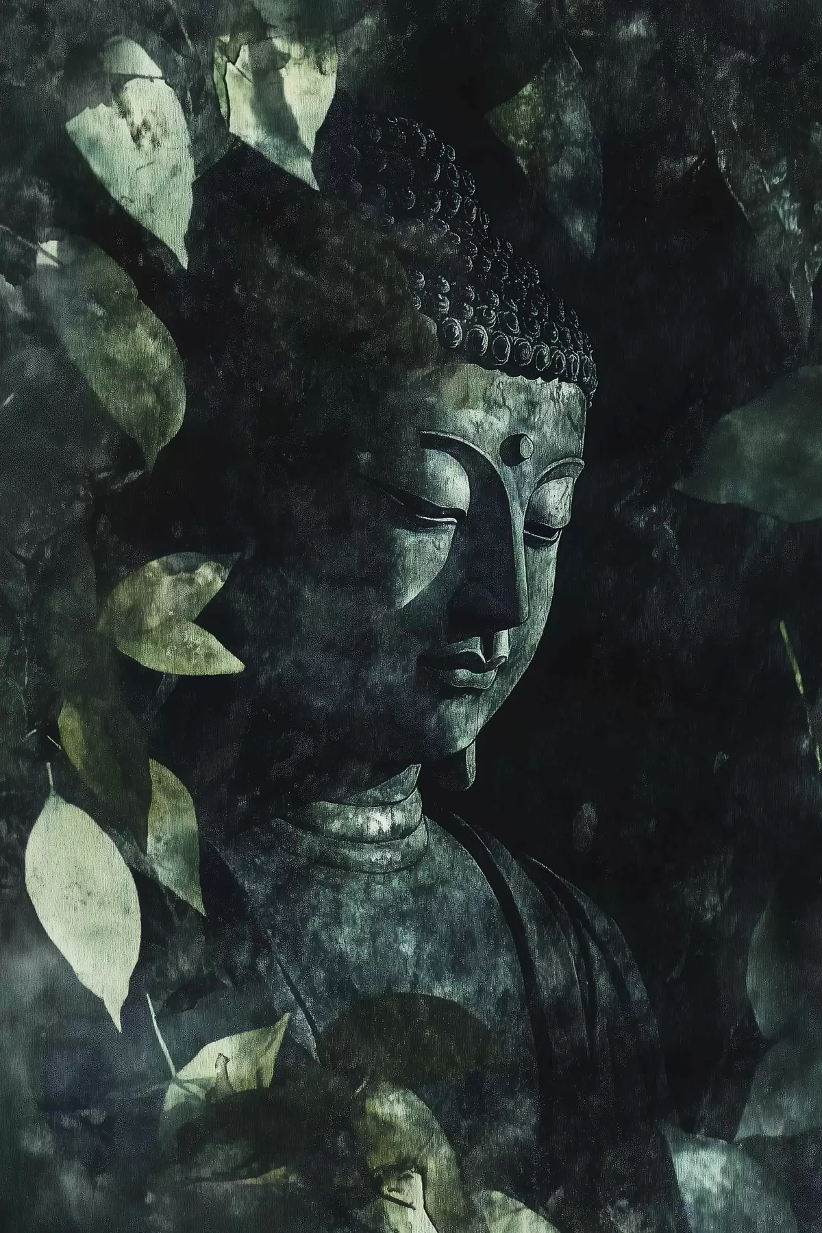 Picture Meditative Buddha in the green leaves, spiritual Nr s44029
