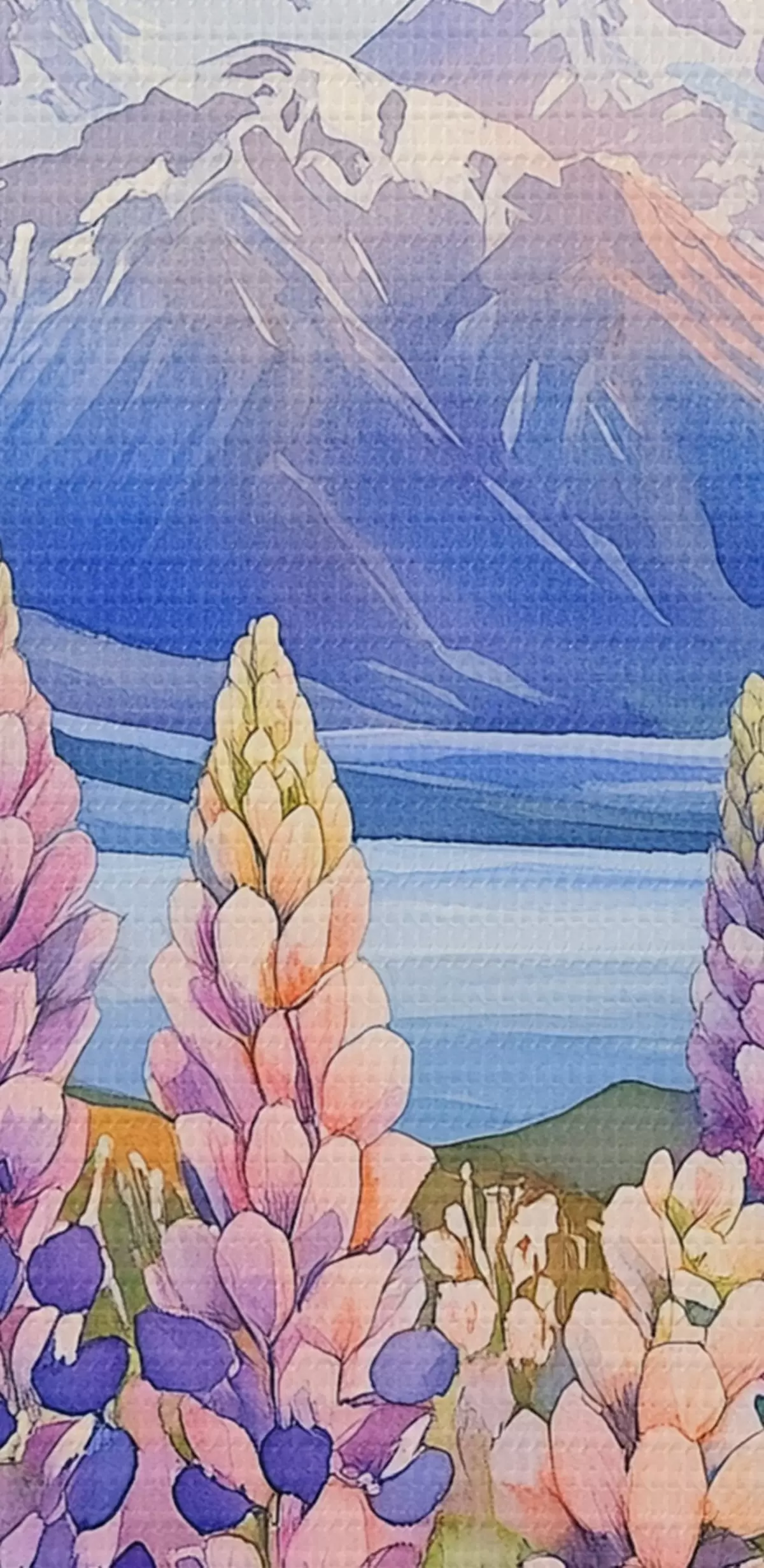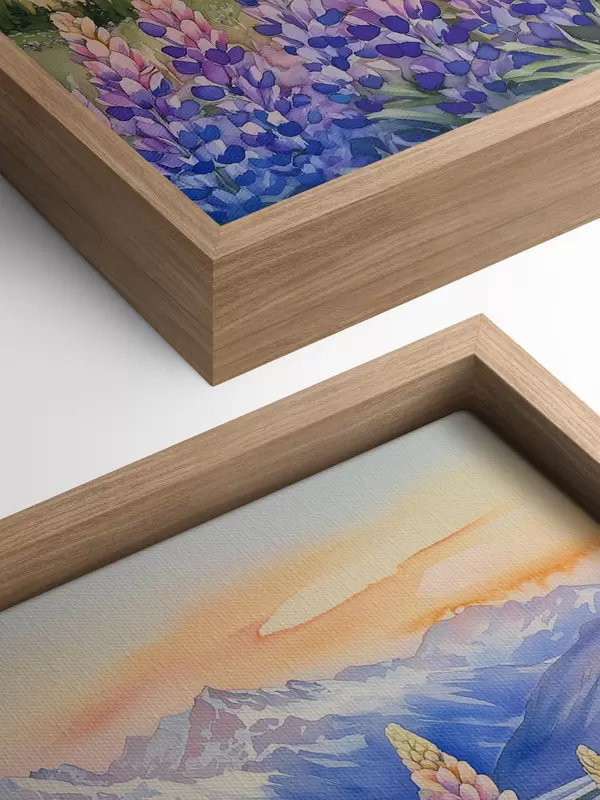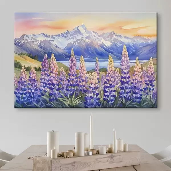Picture Lupin flowers, meadow, mountains, watercolor style, sunset sky Nr s44146