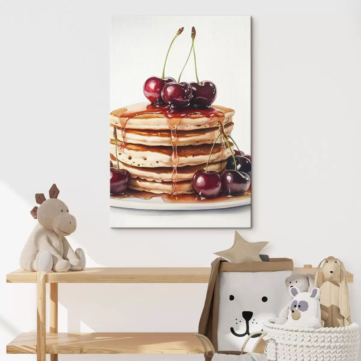 Picture Delicious pancakes with cherries and syrup, watercolor style Nr s44305