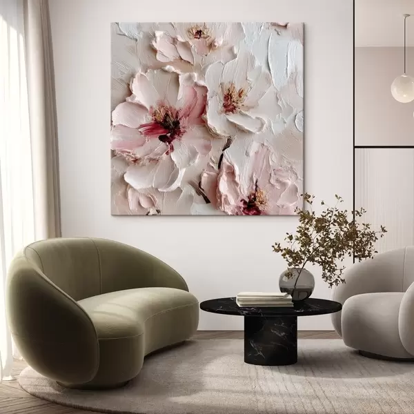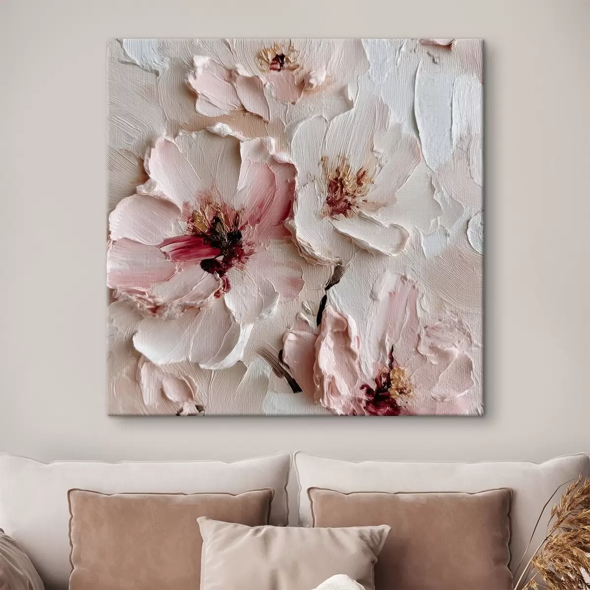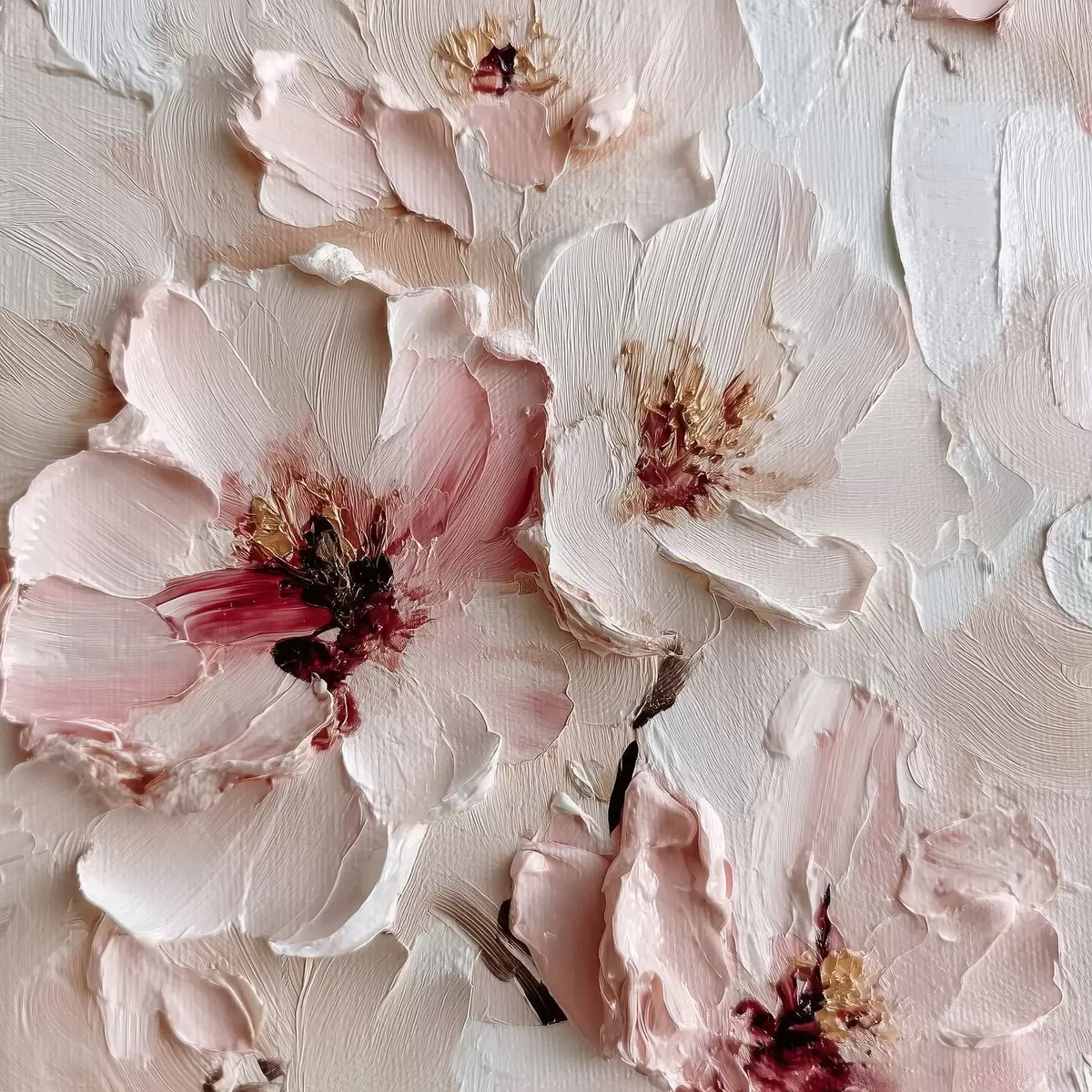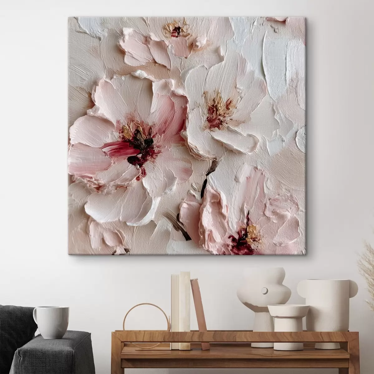 Picture Flowers with impasto-style imitation in pink and white strokes Nr s44333