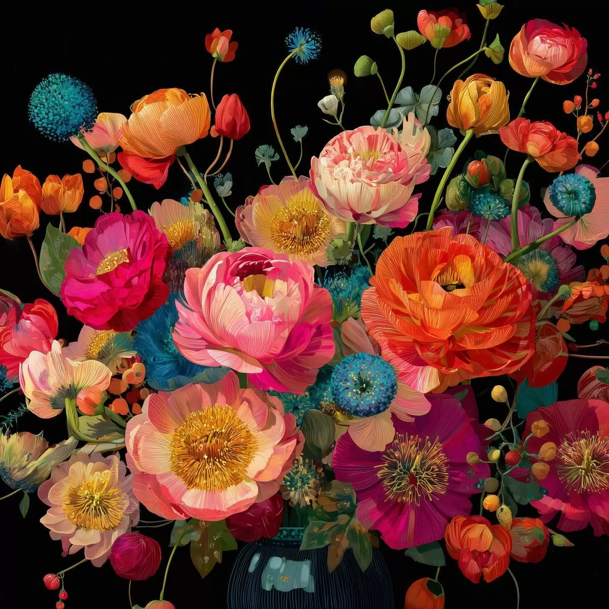 Picture Floral extravaganza on a black background Nr s44352