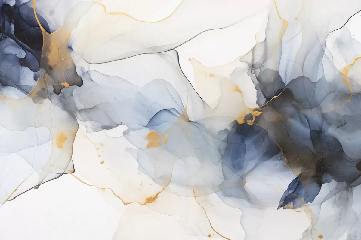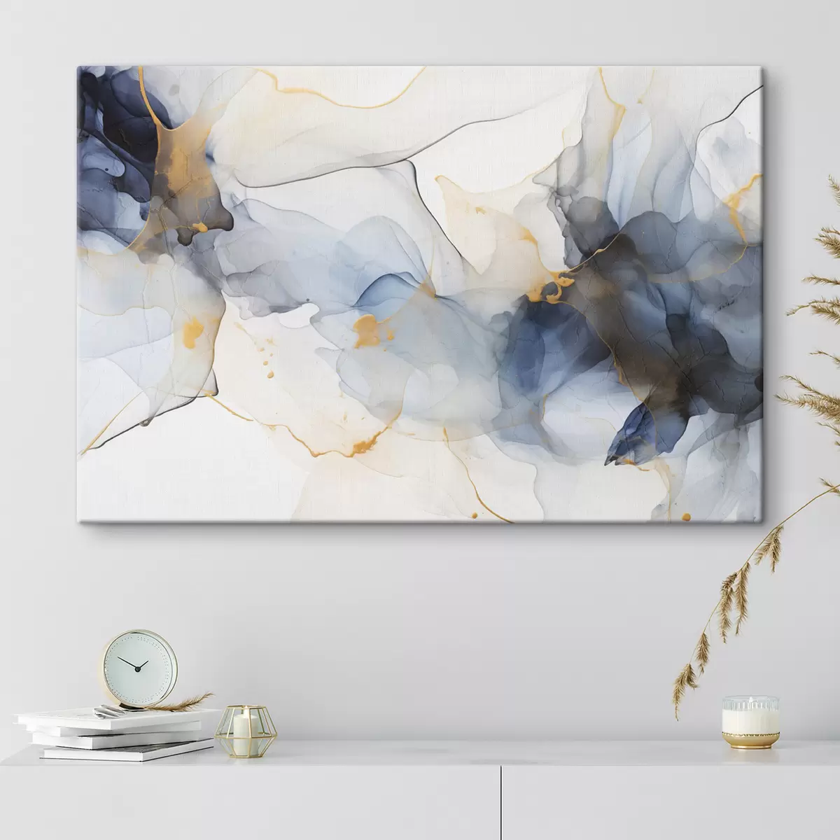 Picture Abstract painting with blue ink, fluid and organic shapes, delicate textures on a white background Nr s44397