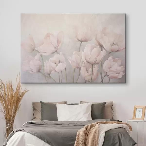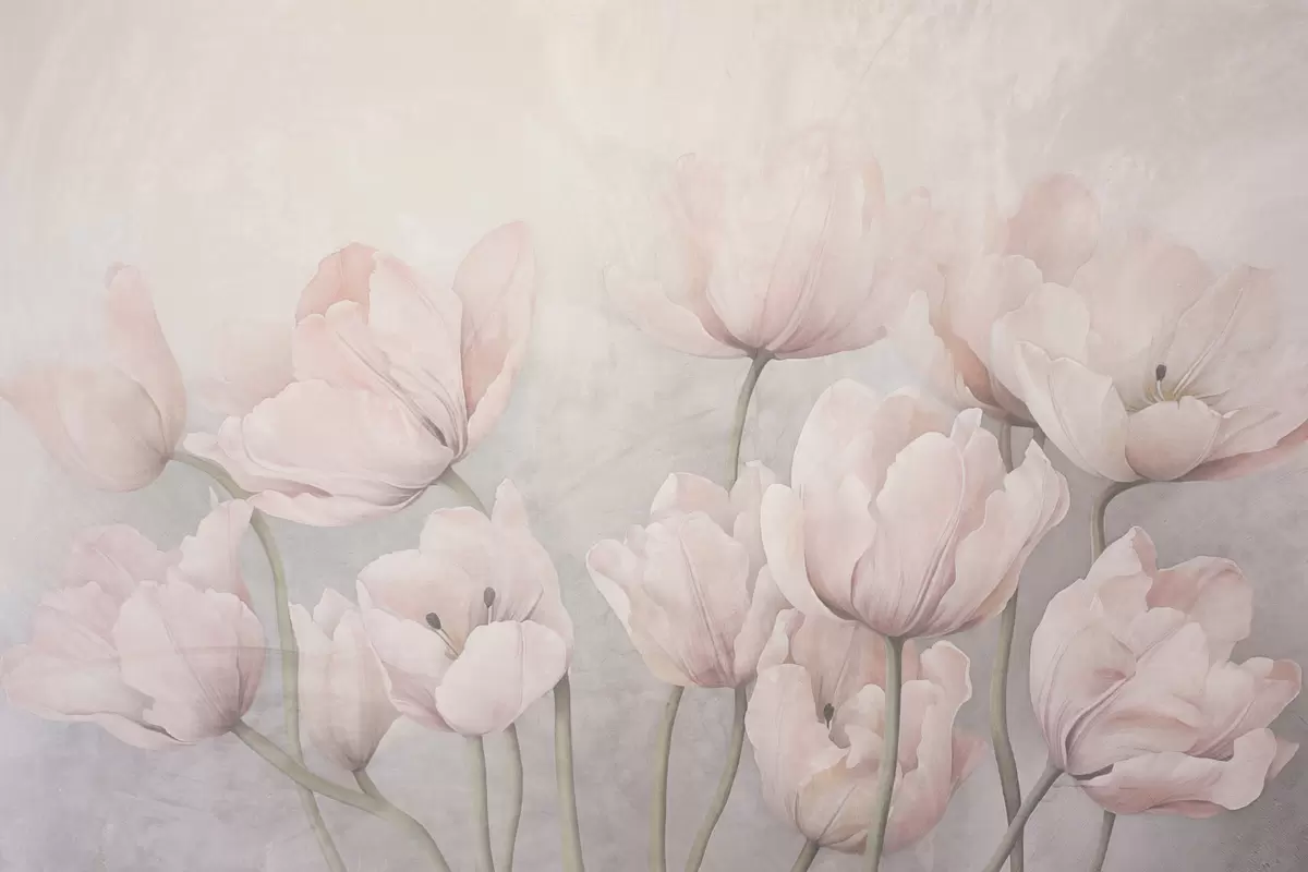 Picture Vintage textured pink tulips with long stems, soft muted colors, light gray background Nr s44407