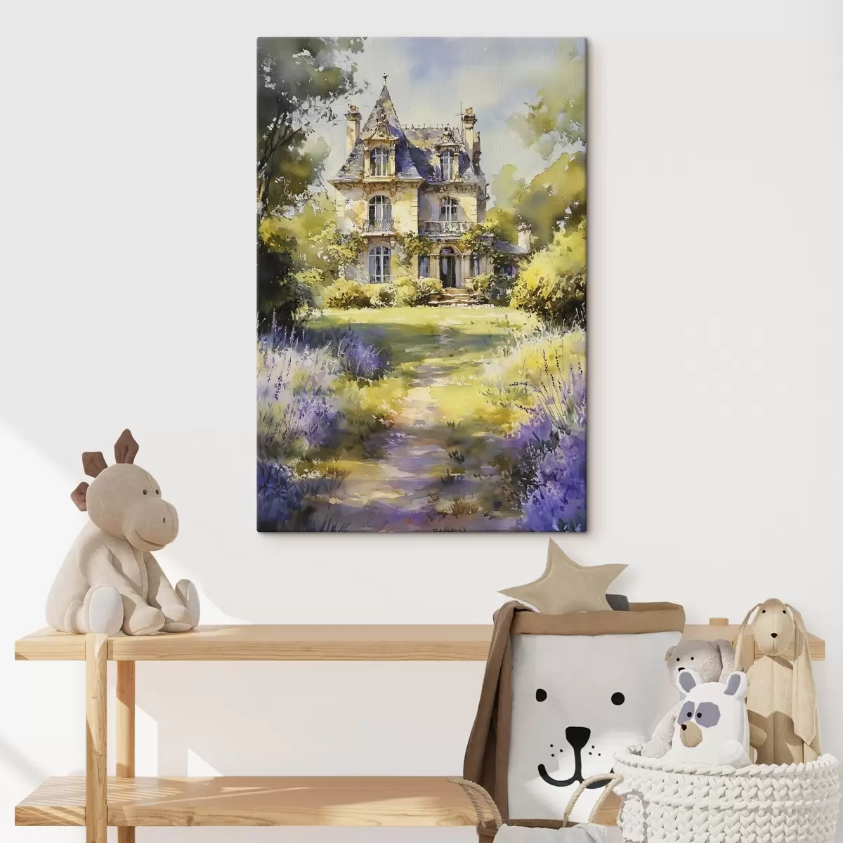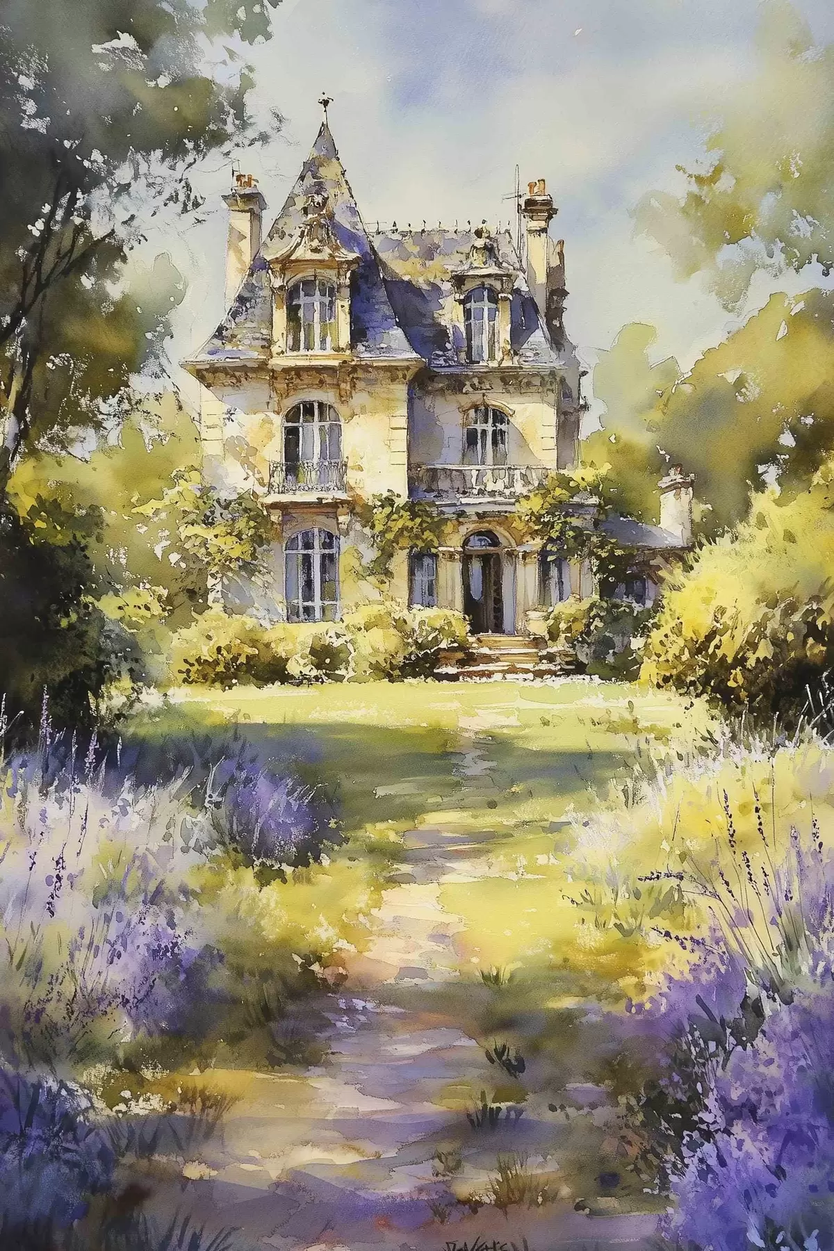 Picture French countryside cottage, watercolor style, lavender fields Nr s44501