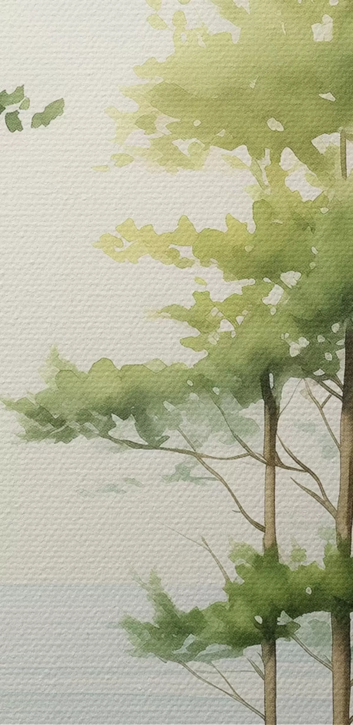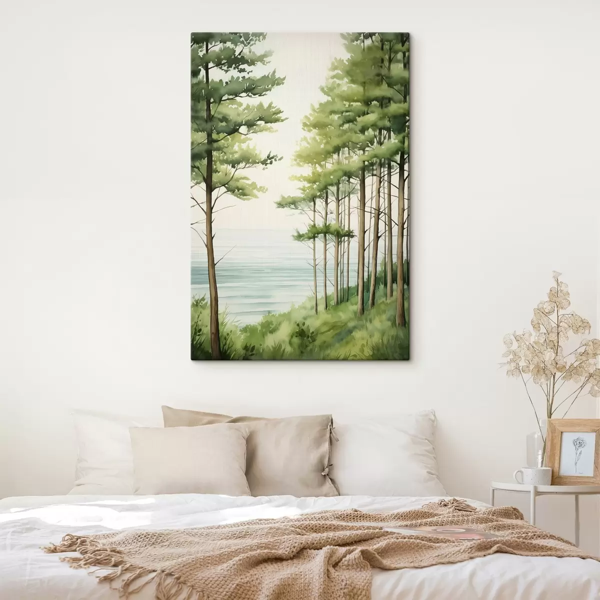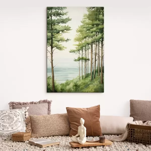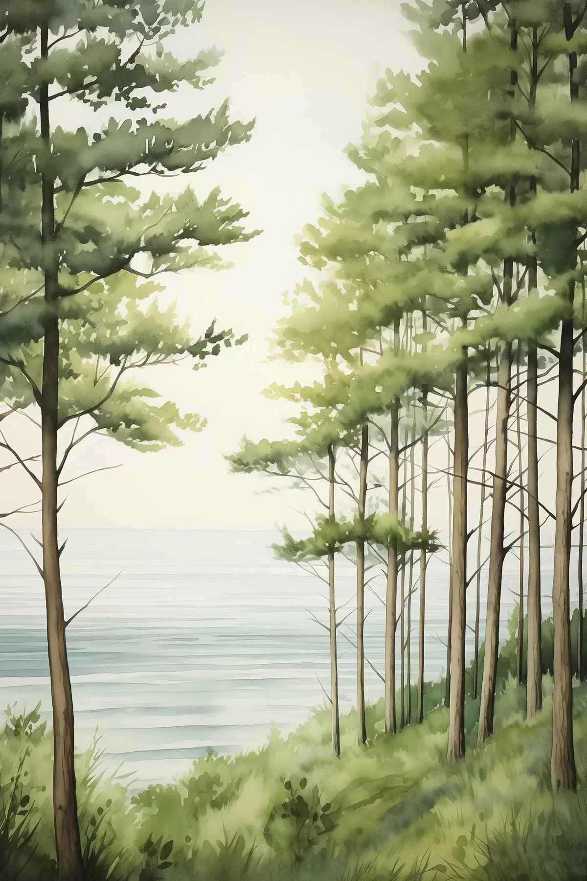 Picture Green pine forest near the sea, watercolor style Nr s44603