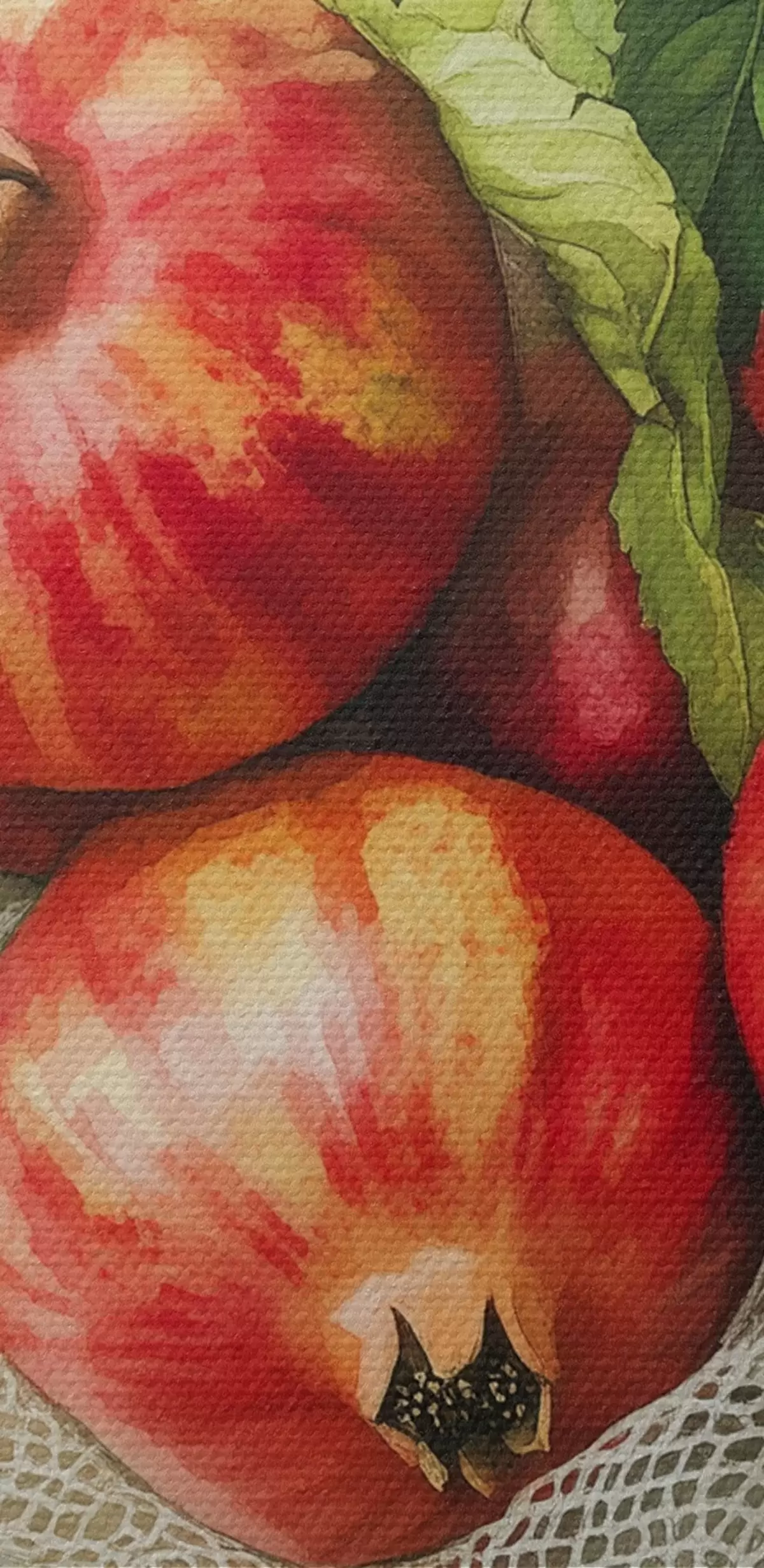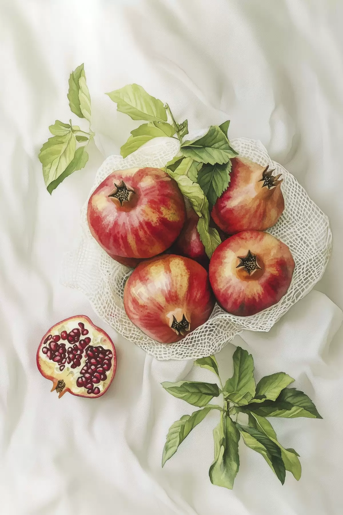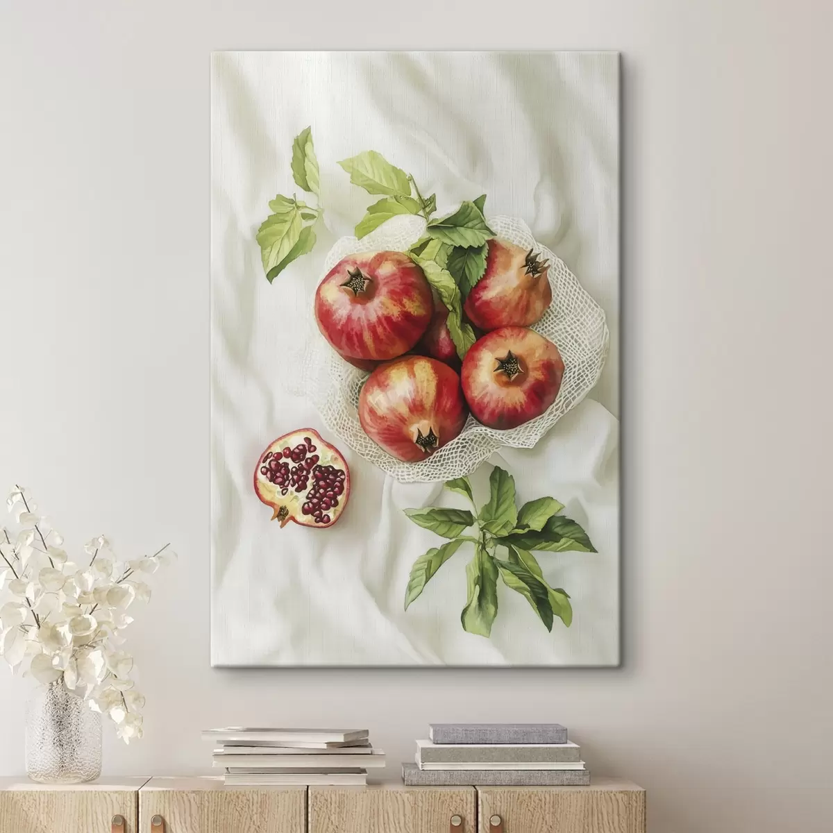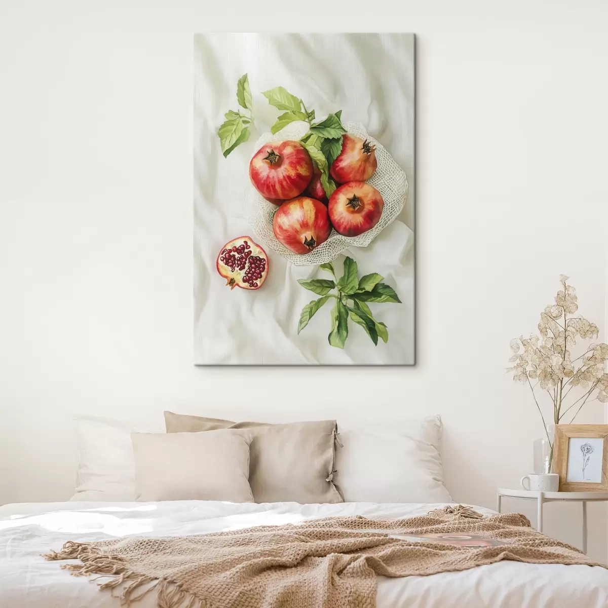 Picture Pomegranates with mint leaves on the linen tablecloths, rustic style Nr s44611