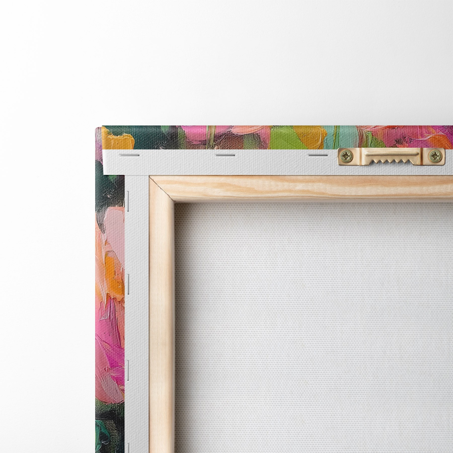 To stretch the canvas on stretcher bars without damaging the image, we use mirrored image.