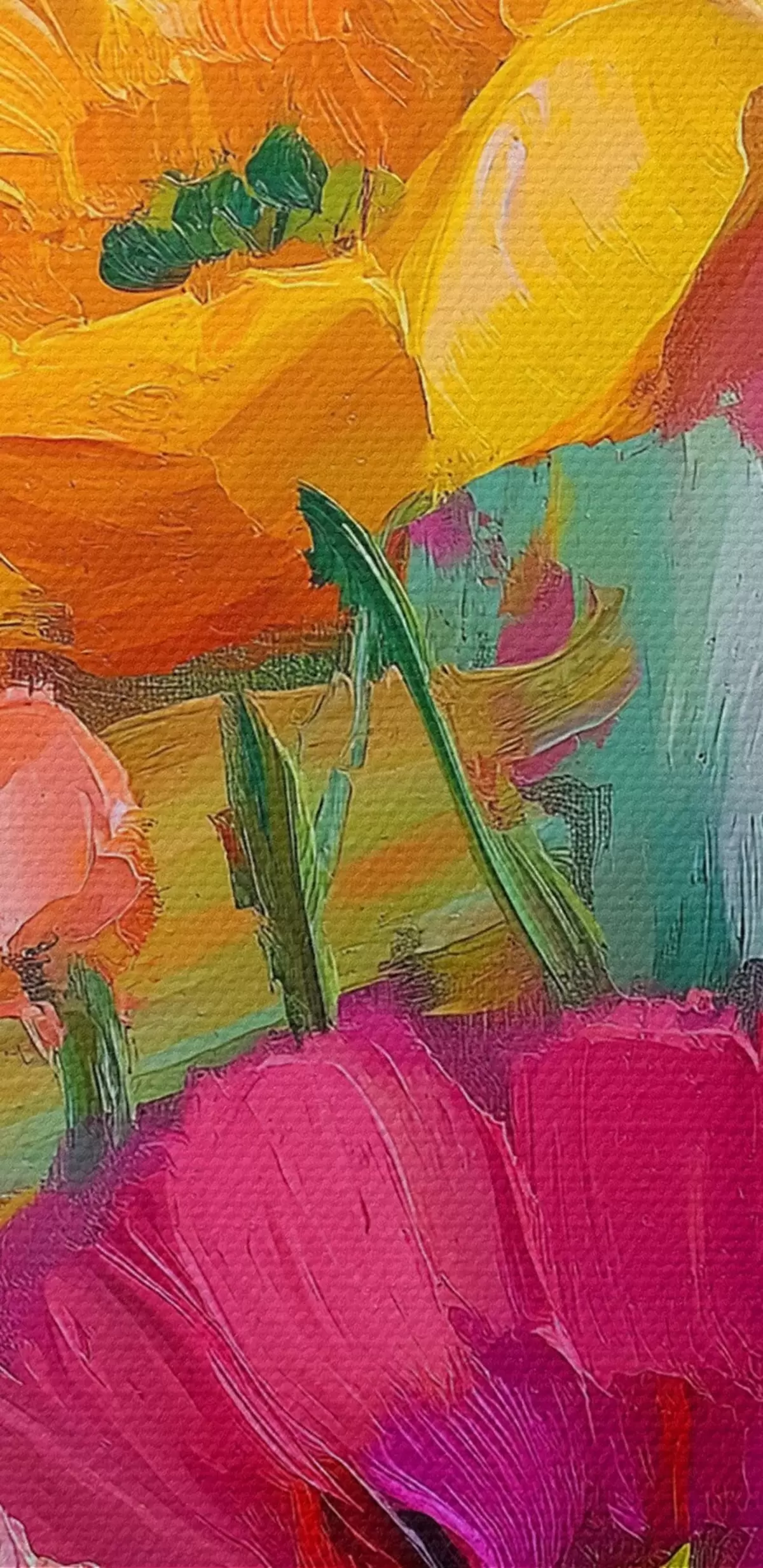 The painting can be hung immediately after receiving it. The painting will be stretched on 2 cm wide wooden stretcher.