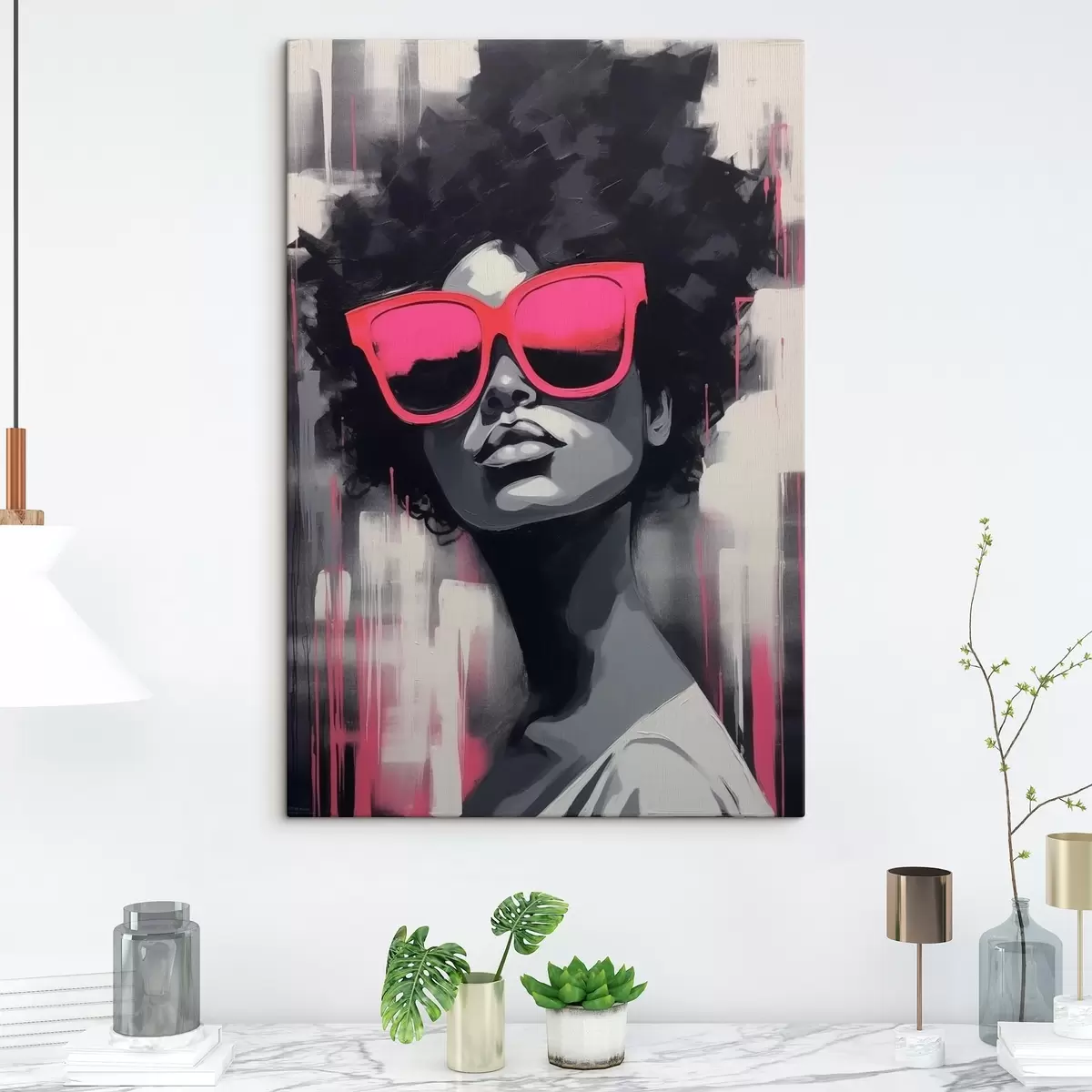 Picture Girl with pink glasses, black and white style Nr s44624