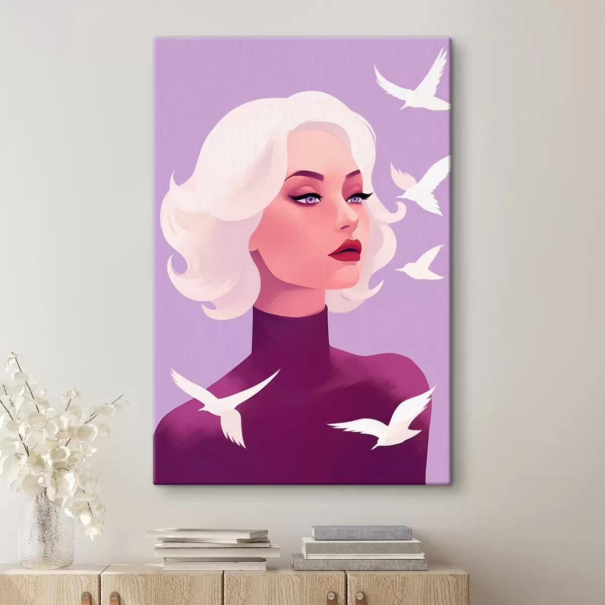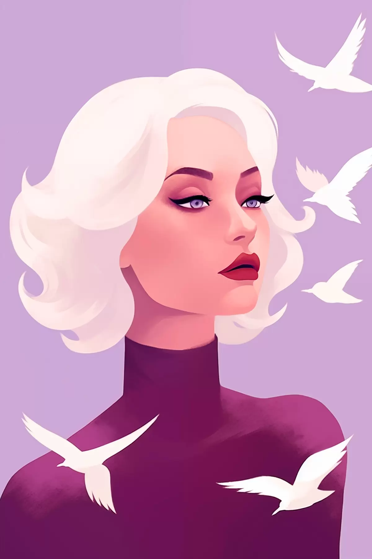 Picture Female portrait with white hair on the background with birds Nr s44681
