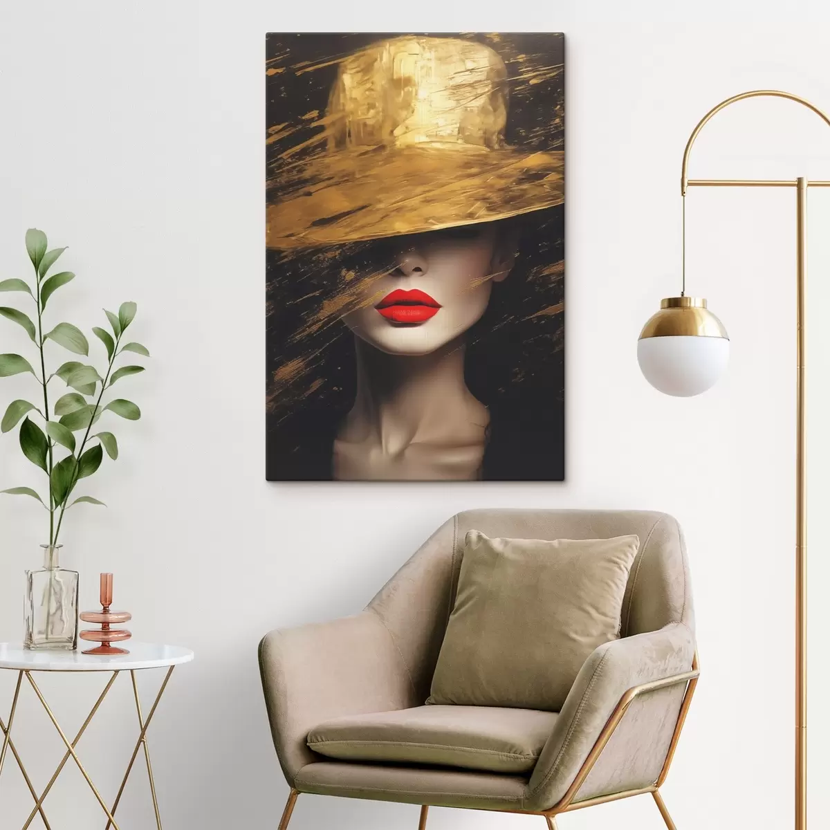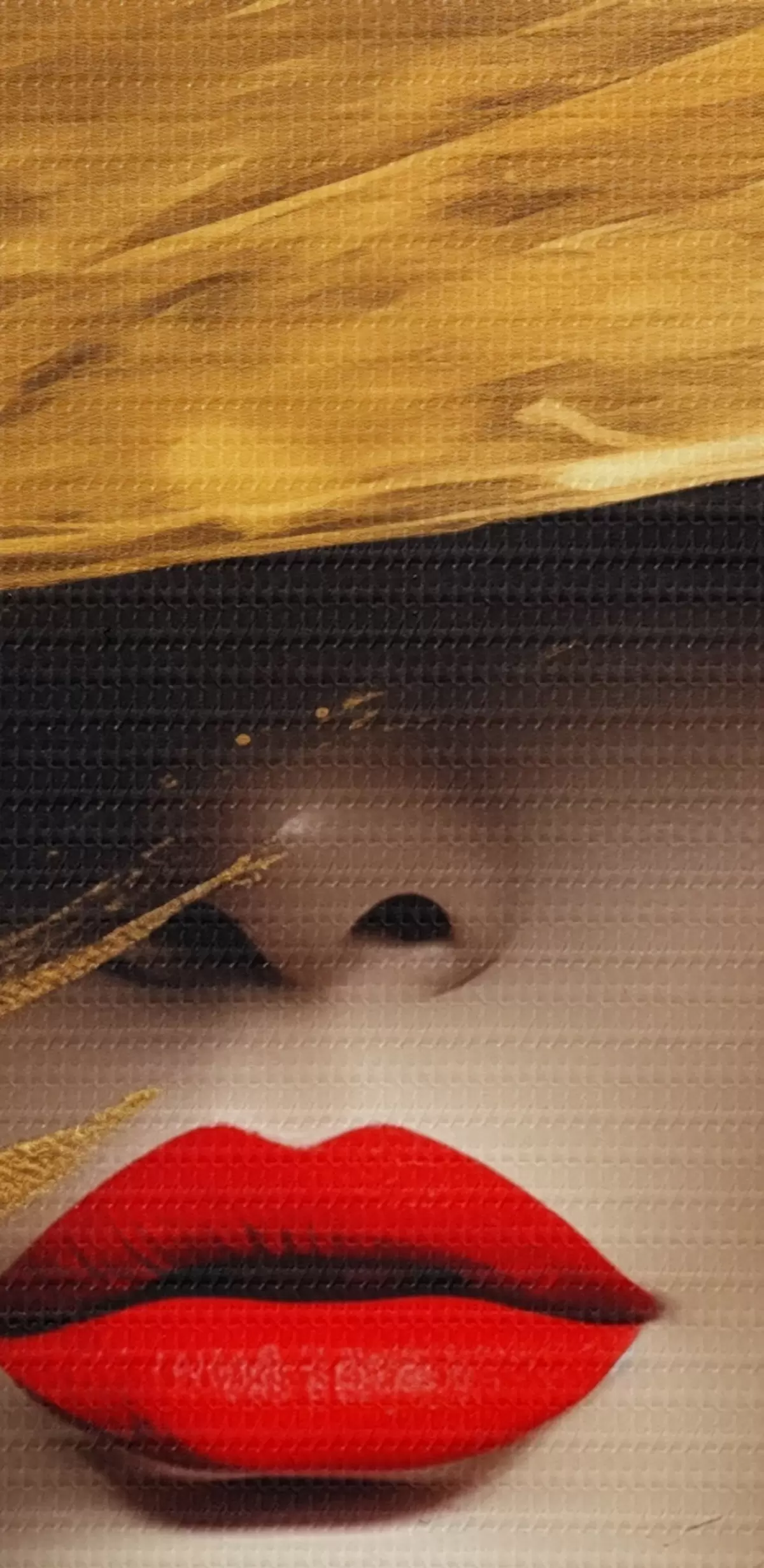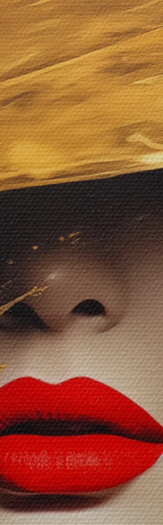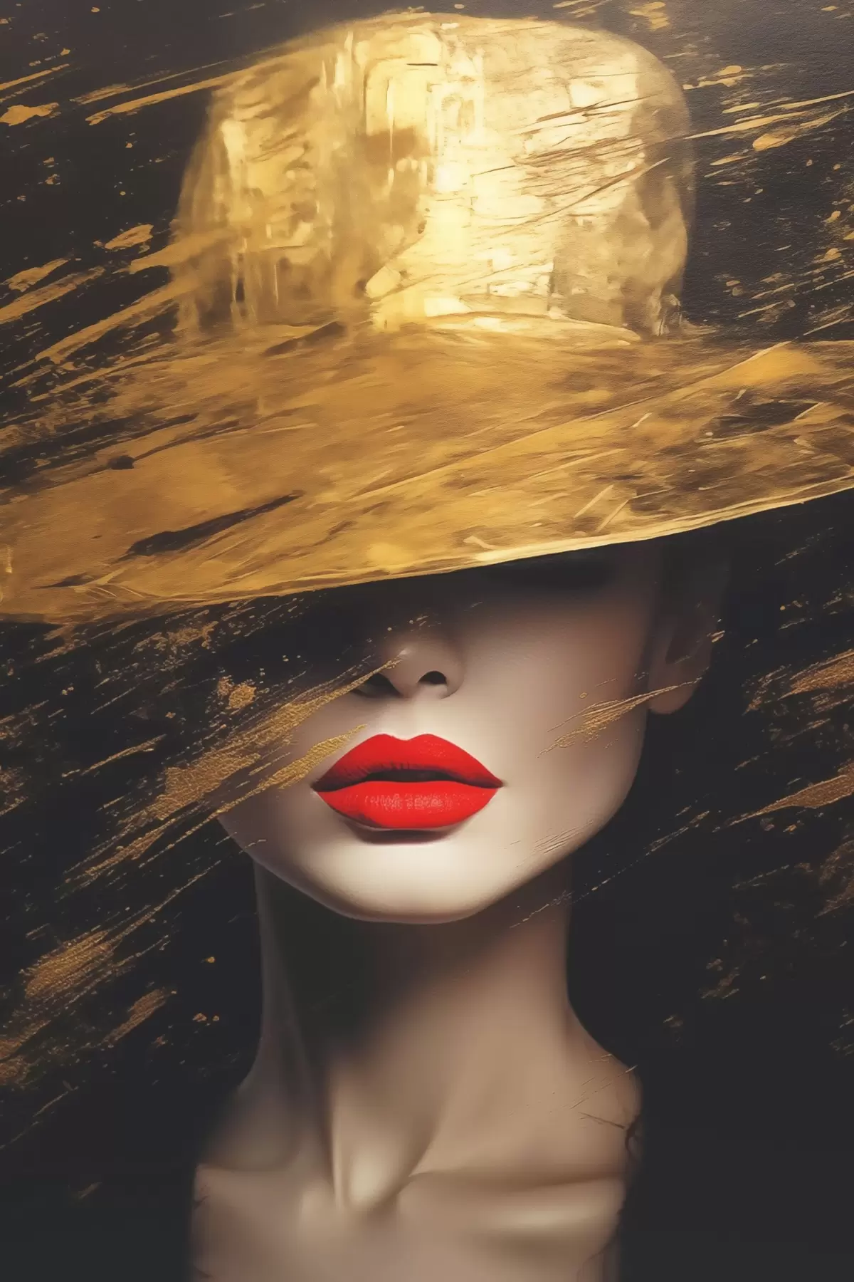 Picture Female face with red lipstick under wide hat Nr s44691