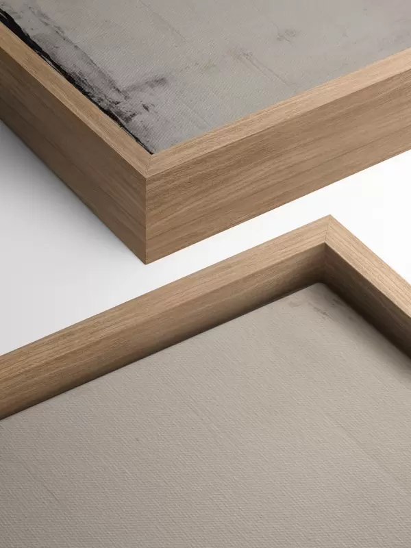An additional varnish coating provides a delicate satin finish