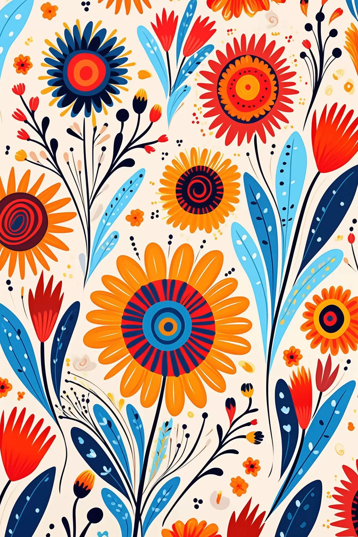 Picture Stylized flowers in blue and orange palette Nr s44761