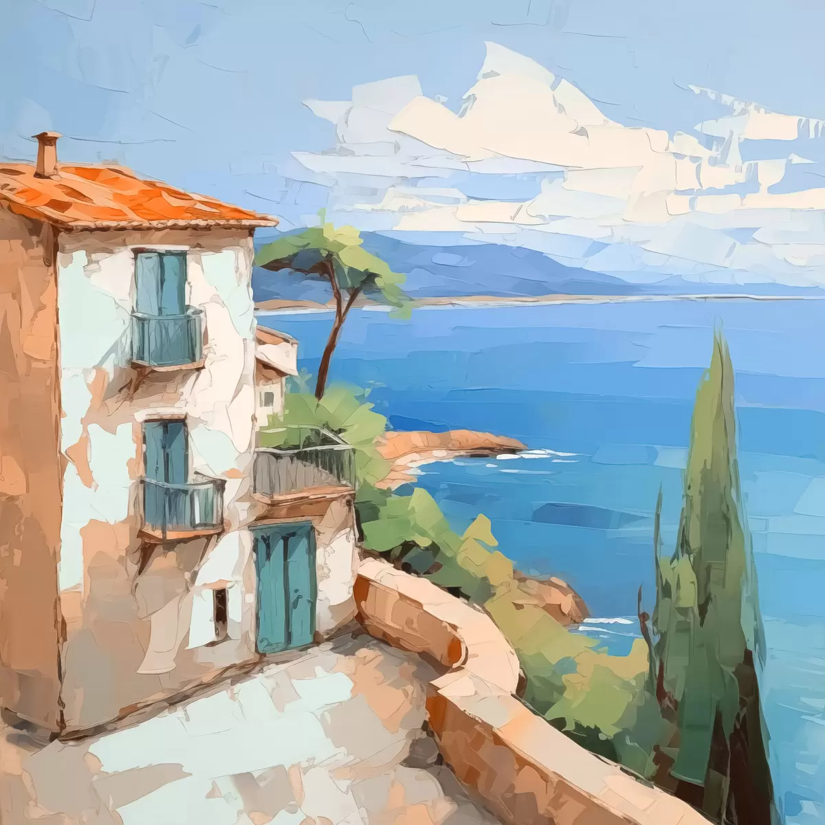 Picture House by the sea imitation of painting Nr s44767