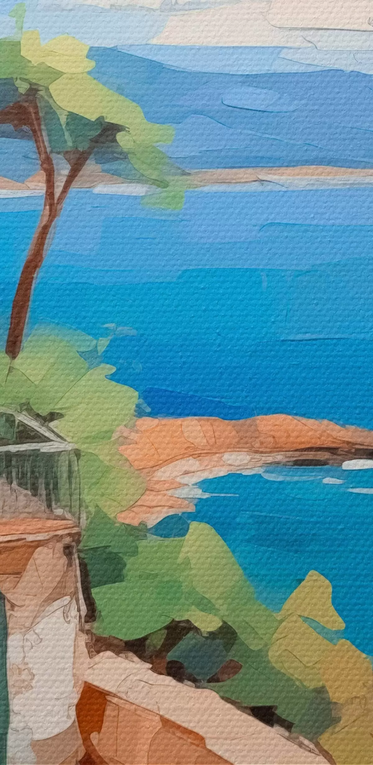 The painting can be hung immediately after receiving it. The painting will be stretched on 2 cm wide wooden stretcher.