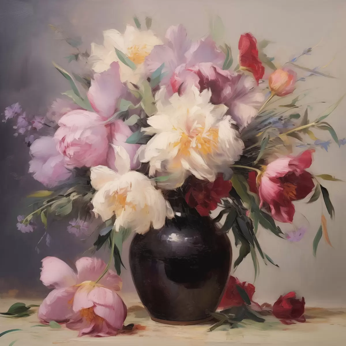Picture Bouquet of peonies in a dark vase Nr s44769