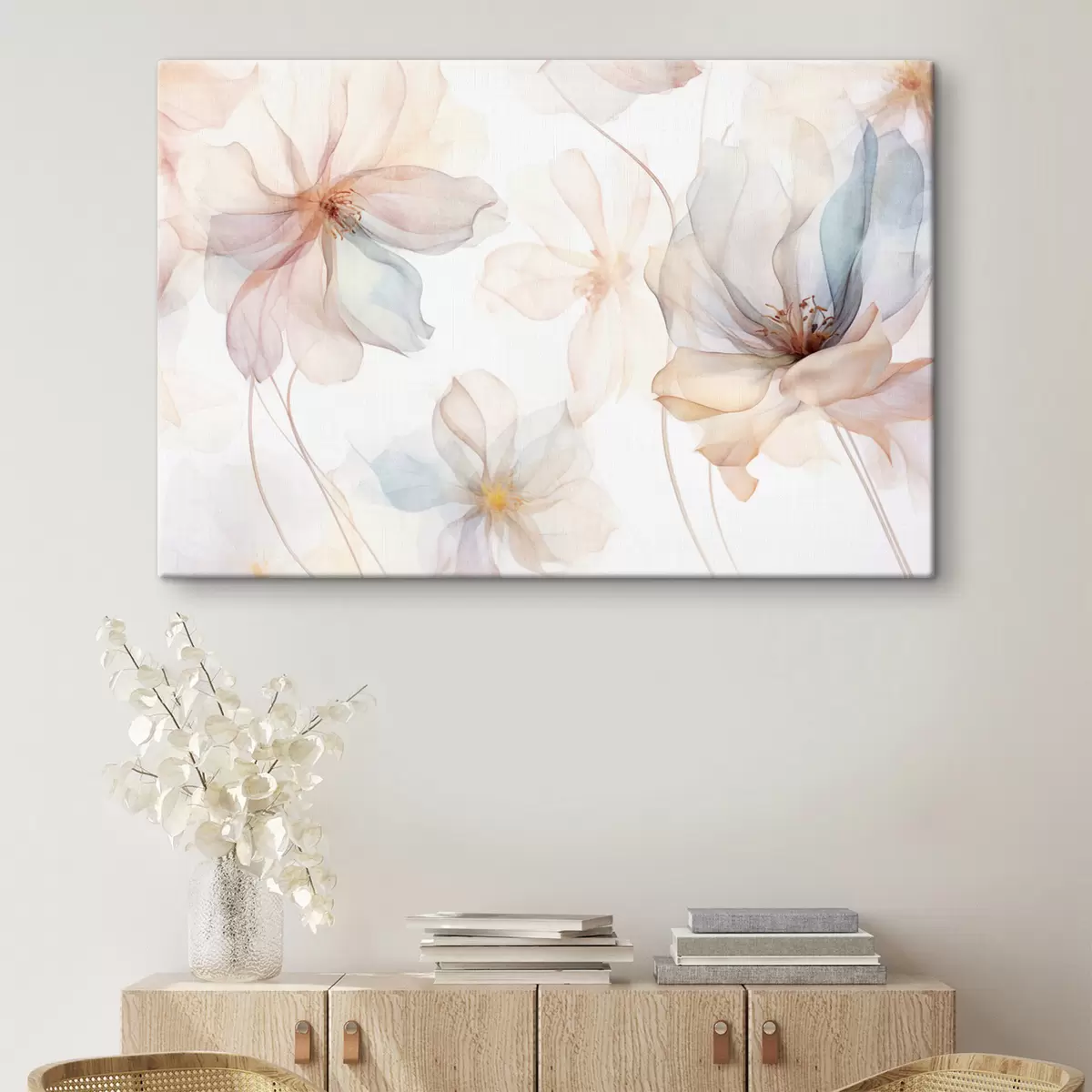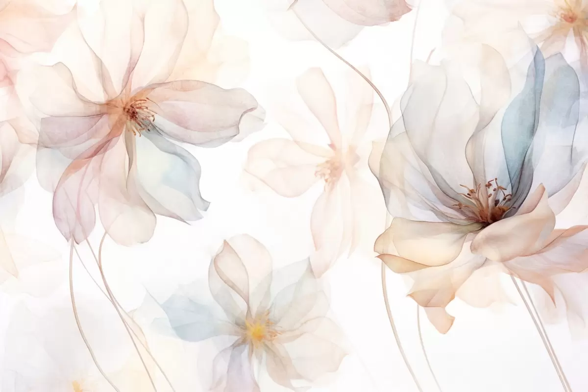 Picture Translucent textured flowers in pastel colors, delicate petals, delicate lines on a white background Nr s44855
