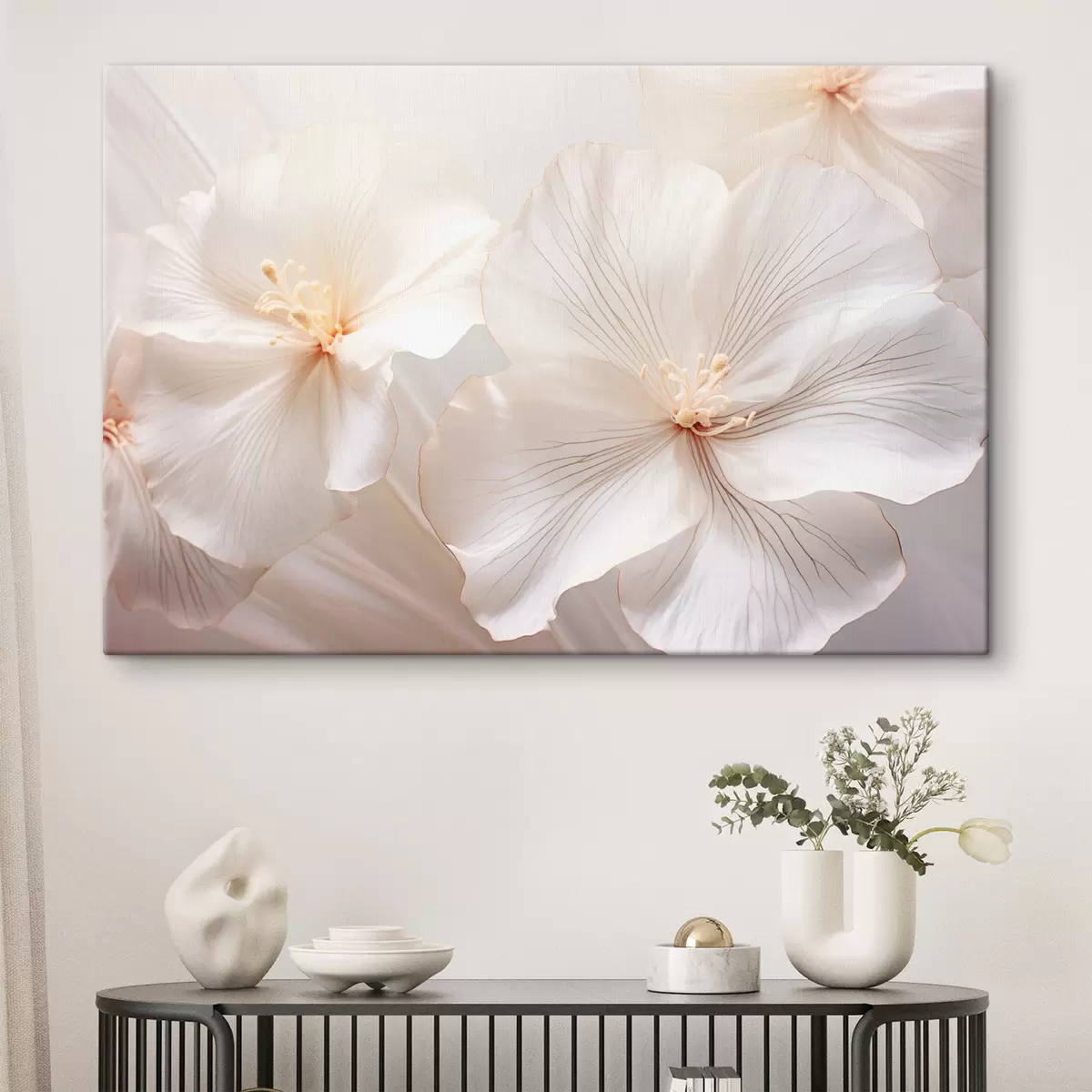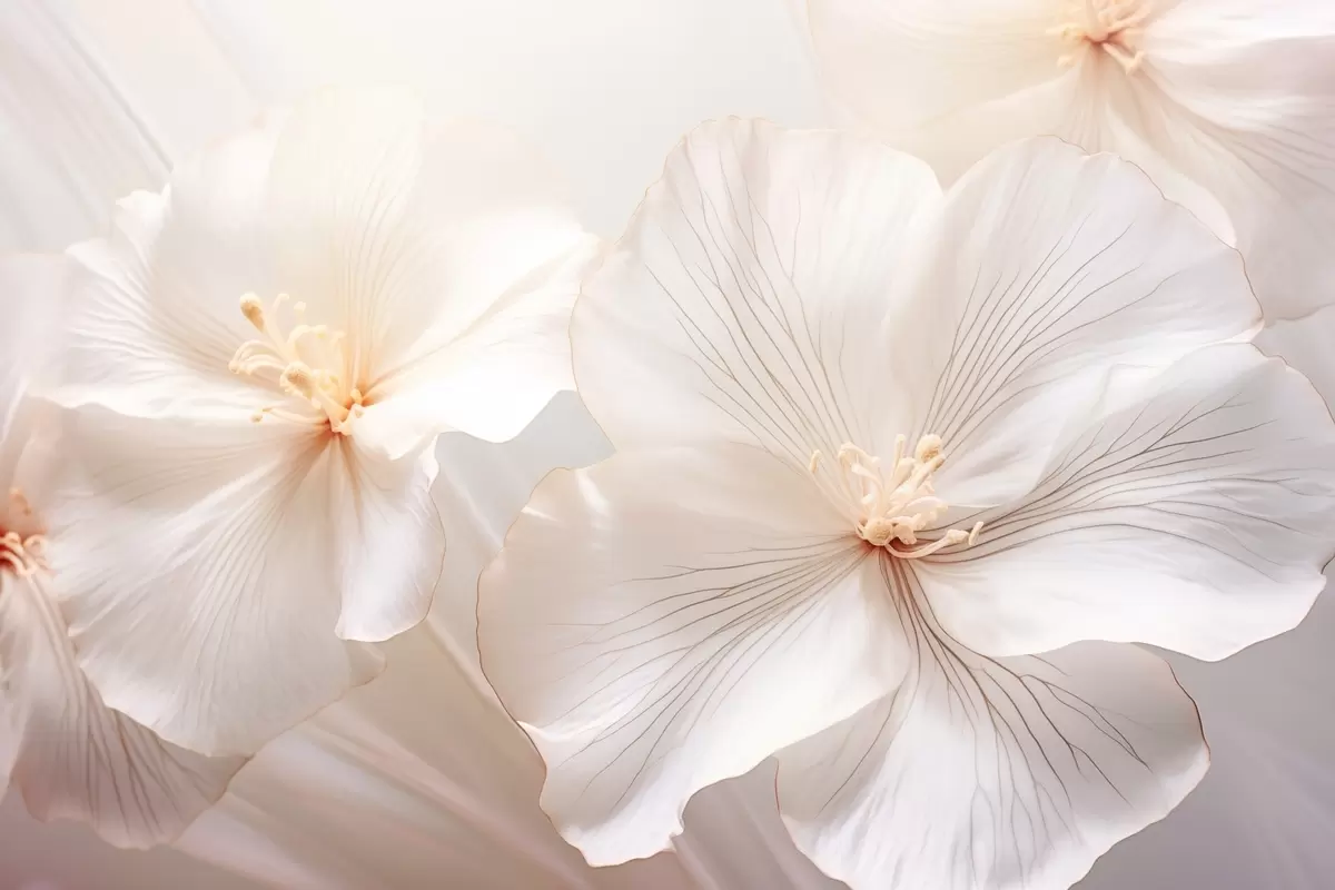 Picture Delicate white flowers with petals and soft, pastel-colored centers, creating a dreamy and ethereal floral art Nr s44858