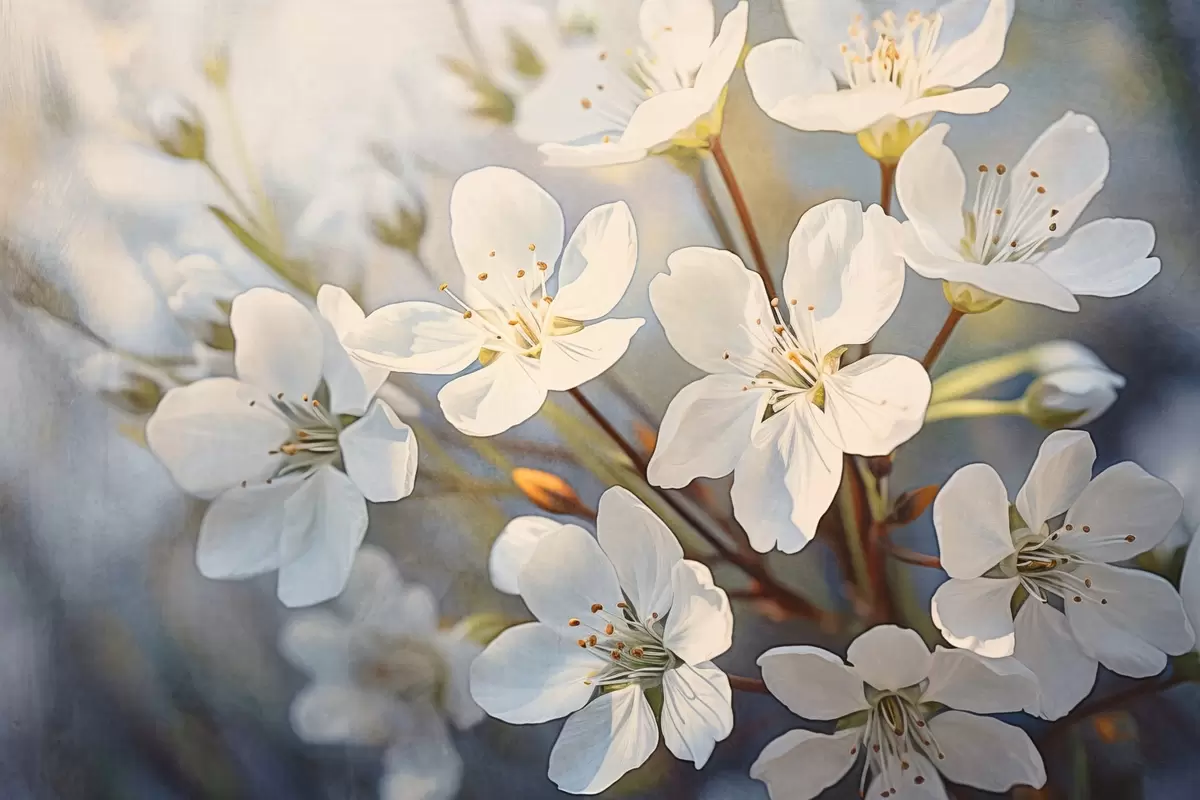 Picture White textured cherry blossoms in watercolor style style, delicate petals, spring season Nr s44859