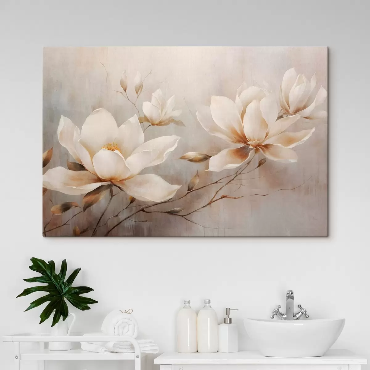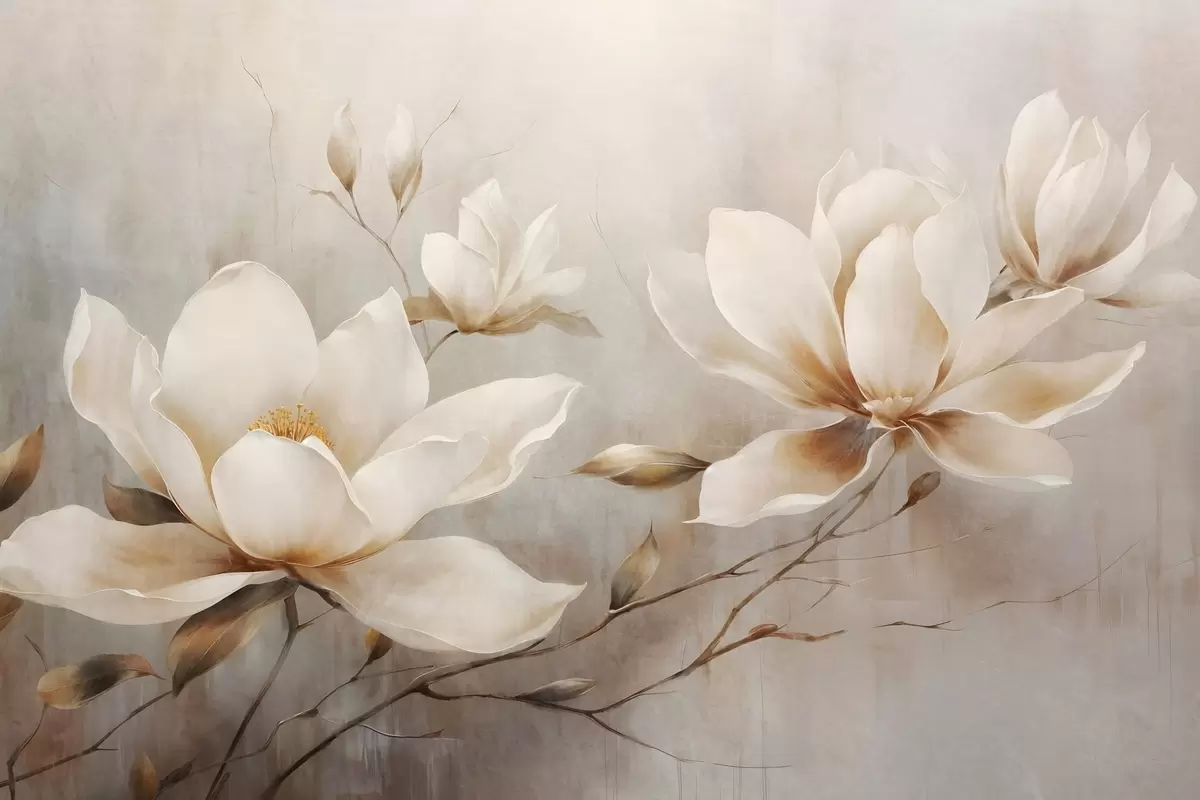 Picture Textured vintage white magnolia flowers on branches in a light brown background Nr s44869