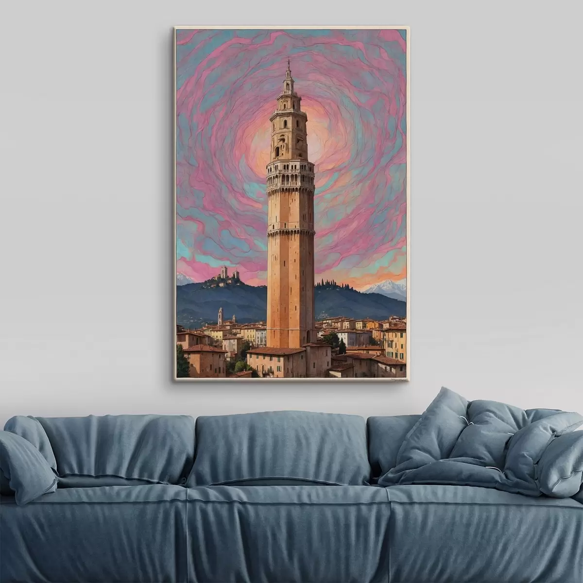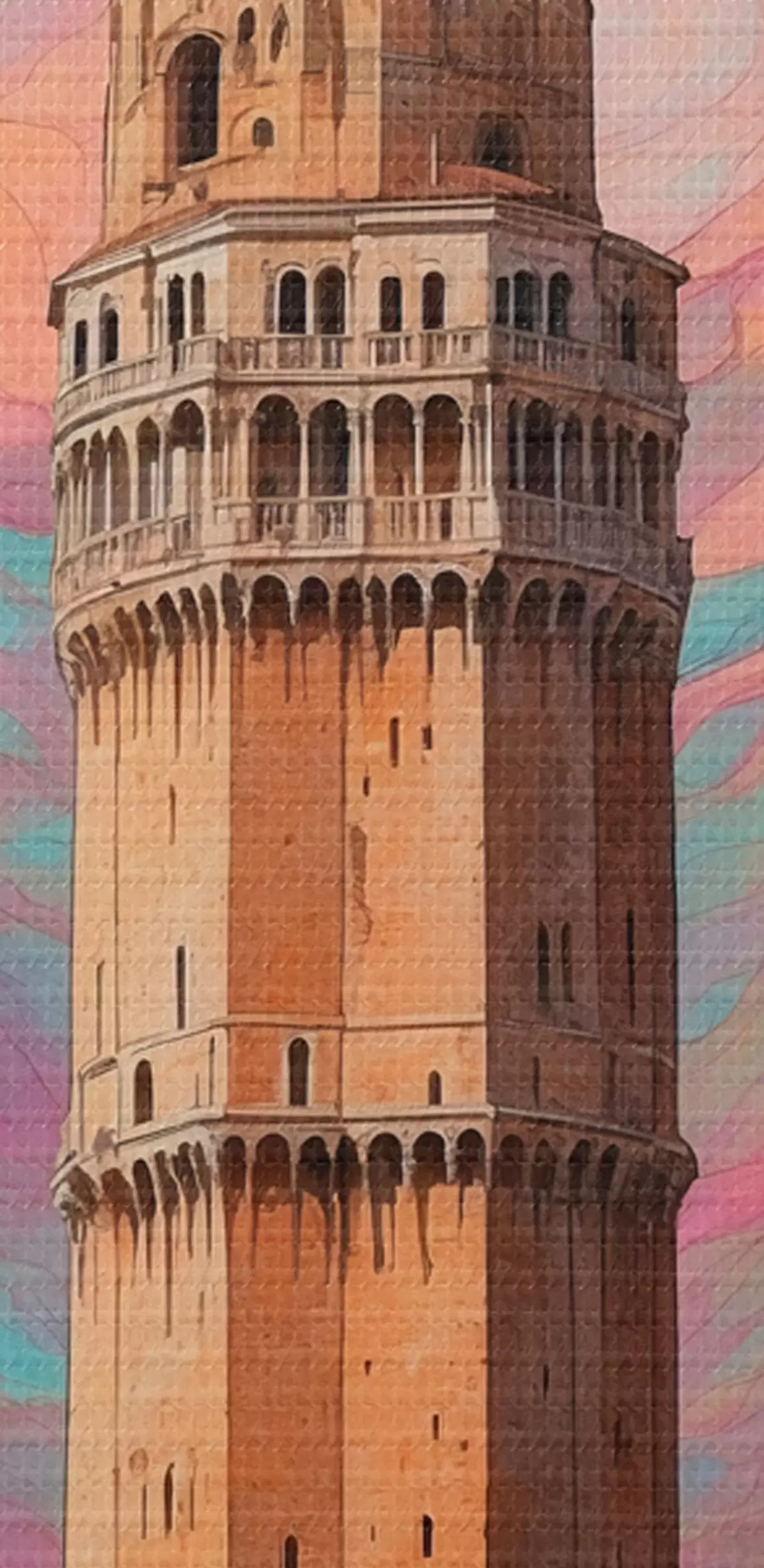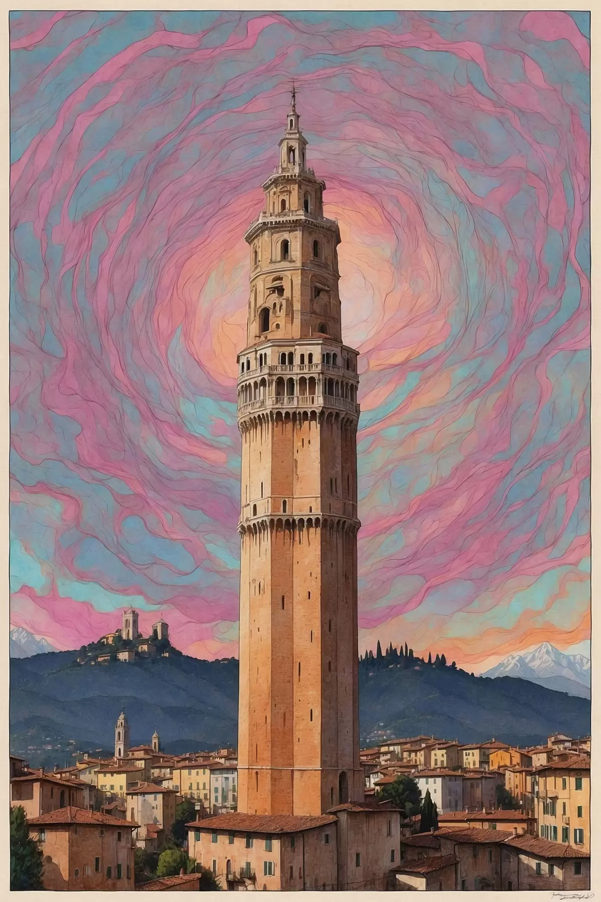 Picture Fantasy tower against the sky with pink and blue spirals Nr s44885