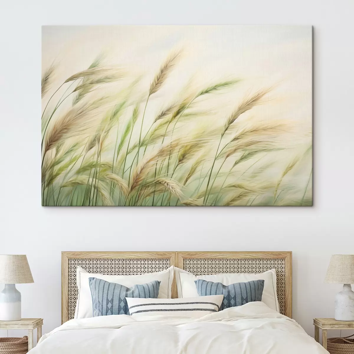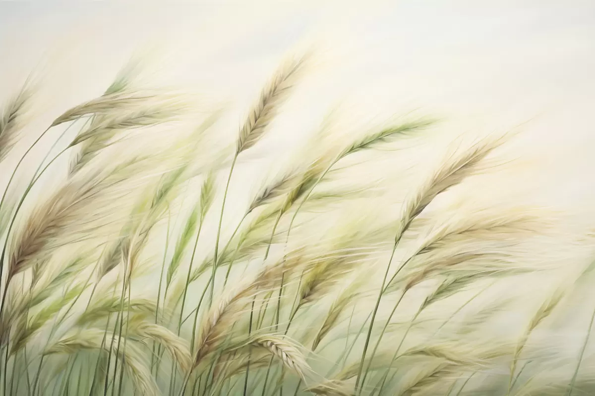 Picture Wheat field with yellow and green ears of grain, soft brushstrokes and a light color palette, natural atmosphere Nr s44923