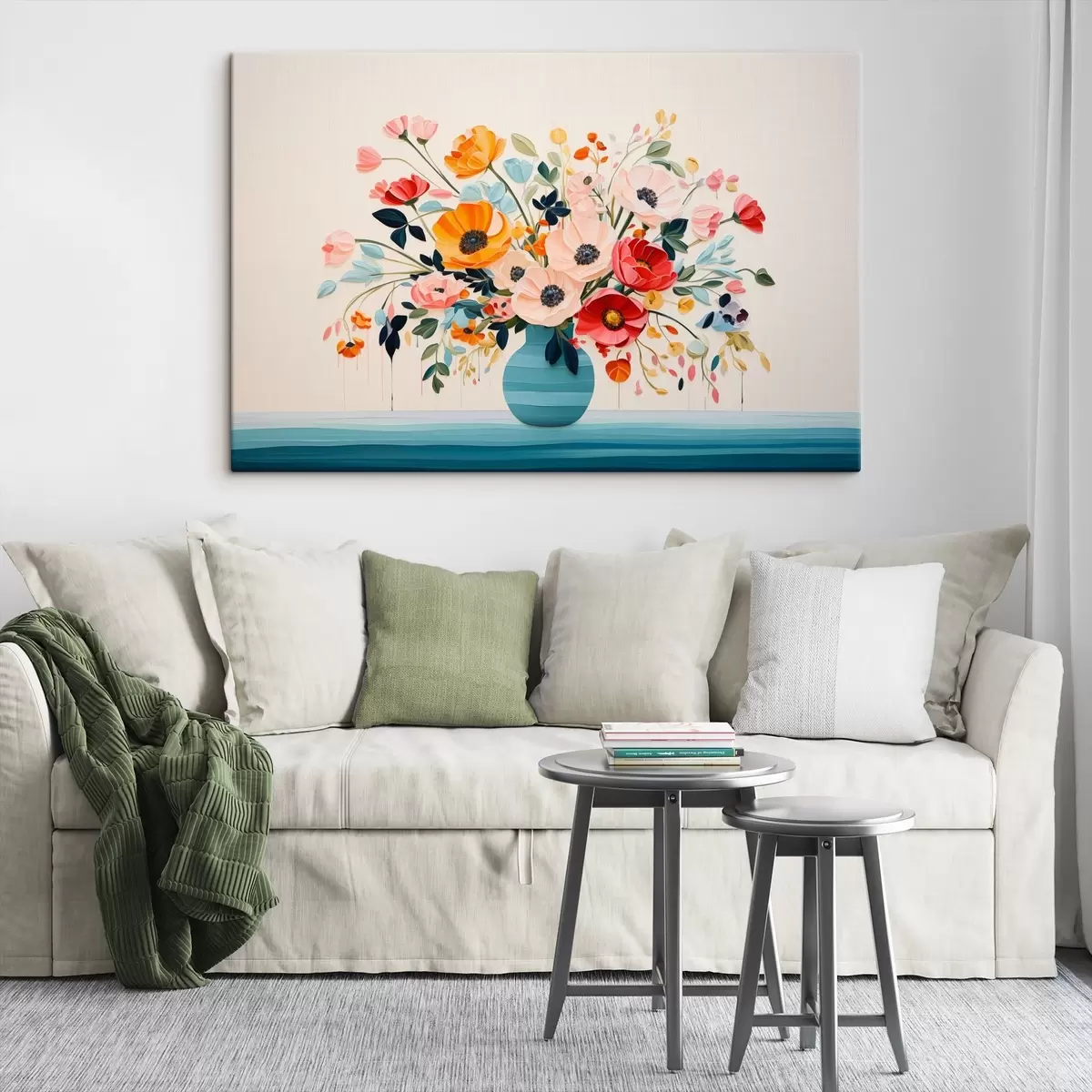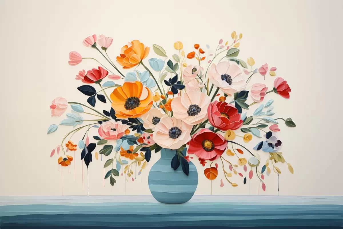 Picture Colorful bouquet in a blue vase in decorative style Nr s44937