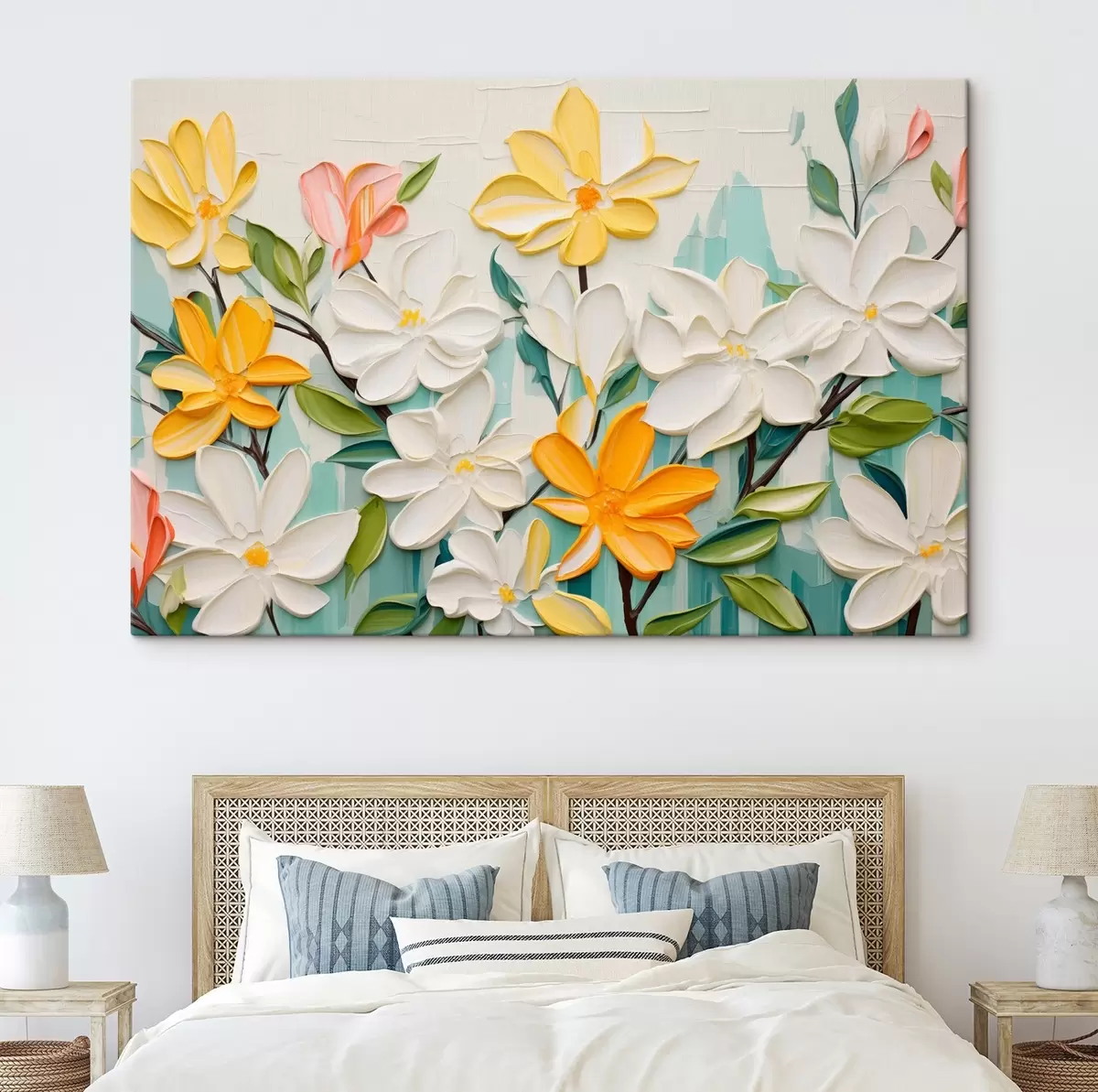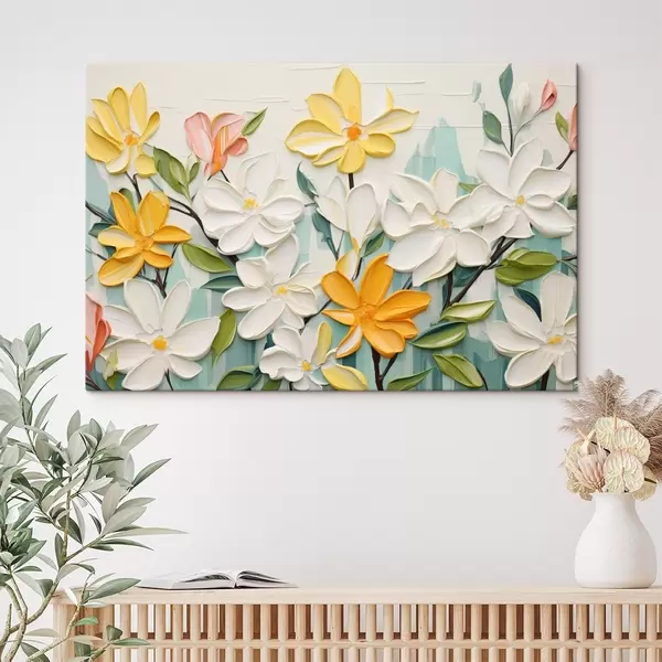 Picture Embossed flowers in bright colors in brushstroke imitation style Nr s44942