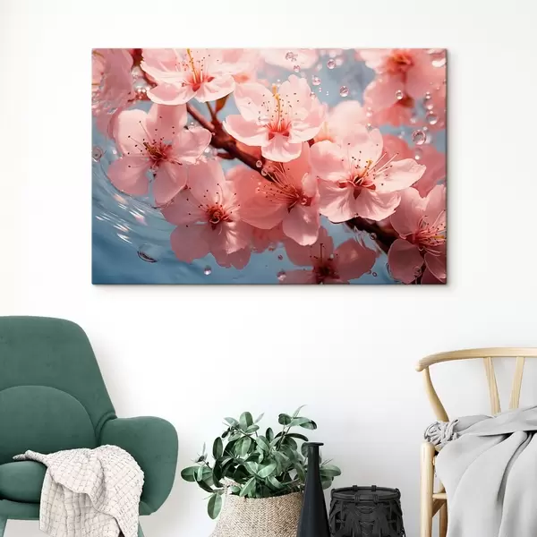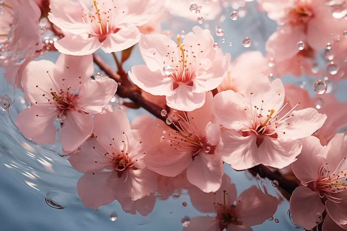 Picture Pink flowers in water with drops Nr s44946